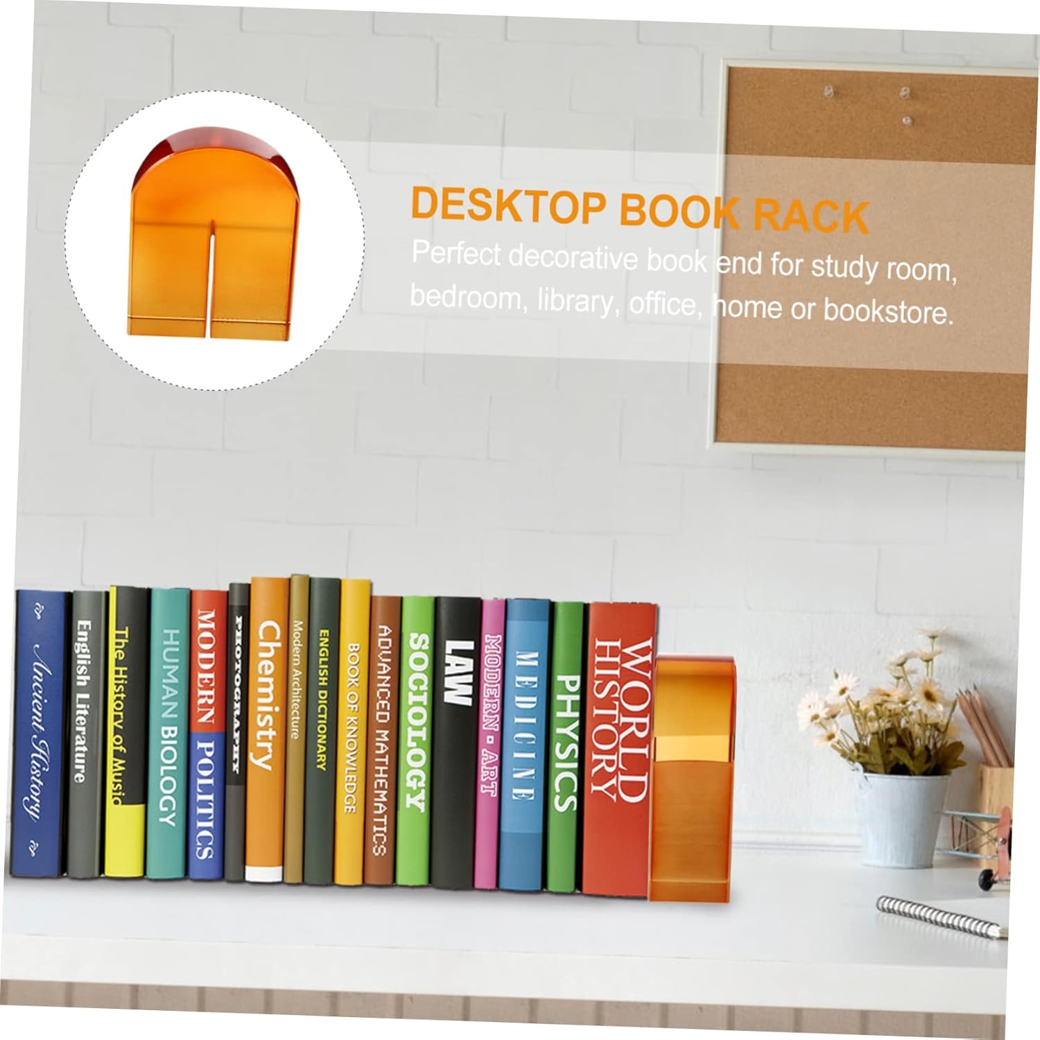 Package List 1 x bookend Characteristics - Color: Orange the office decor. - Size: 13.00X12.00X5.00cm/5.11X4.72X1.97inch desk decor. - Material: Crystal Arched Bookend. - Simple but not monotonous, this is a wonderful modern decoration for your room Book Storage Holder. - Made of for long time and use Decorative Bookend . - Prevent the bookend from move. Also protect your desktop or shelf from scratch caused by rub childrens bookshelf. - It is smooth and does not hurt your hands, and has a delicate touch kids bookshelf. - Keep your books, files, magazines and others tidy. home, office, classroom, library and other places use book holder for desk.Goods InformationBook Storage Rack This book stand is made of crystal material, which is and sturdy to use.metal bookends Prevent your books, files, magazines and others from tumble, keep them tidy, helps to organize your desktop and shelf well.decorative book support bookend for study room, bedroom, library, office, home or bookstore