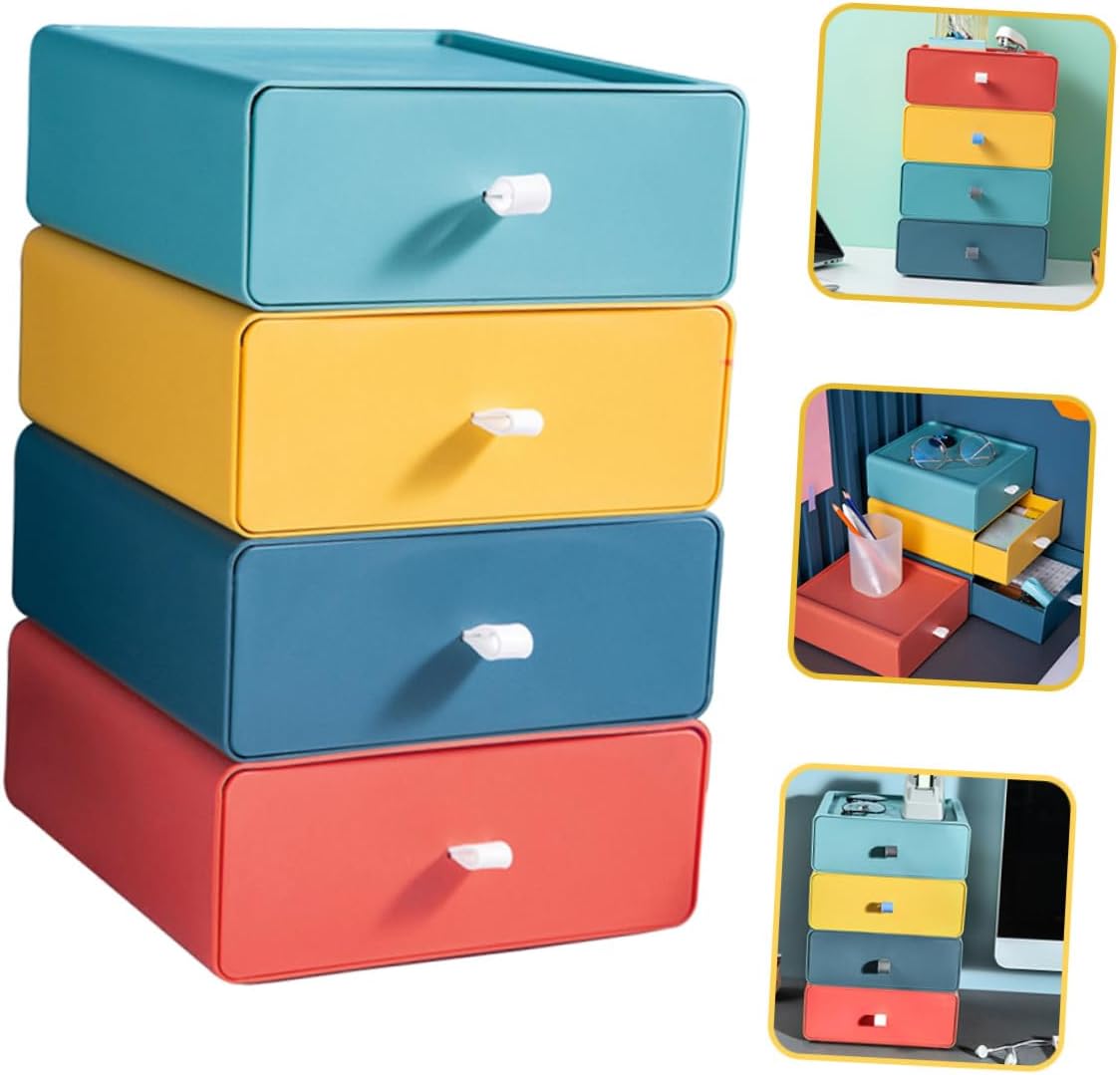 4pcs Stackable Desktop Drawer Boxes Multi-color Table Storage Organizer for Office Stationery Cosmetics and Small Items Space-saving Desktop Storage Cabinets