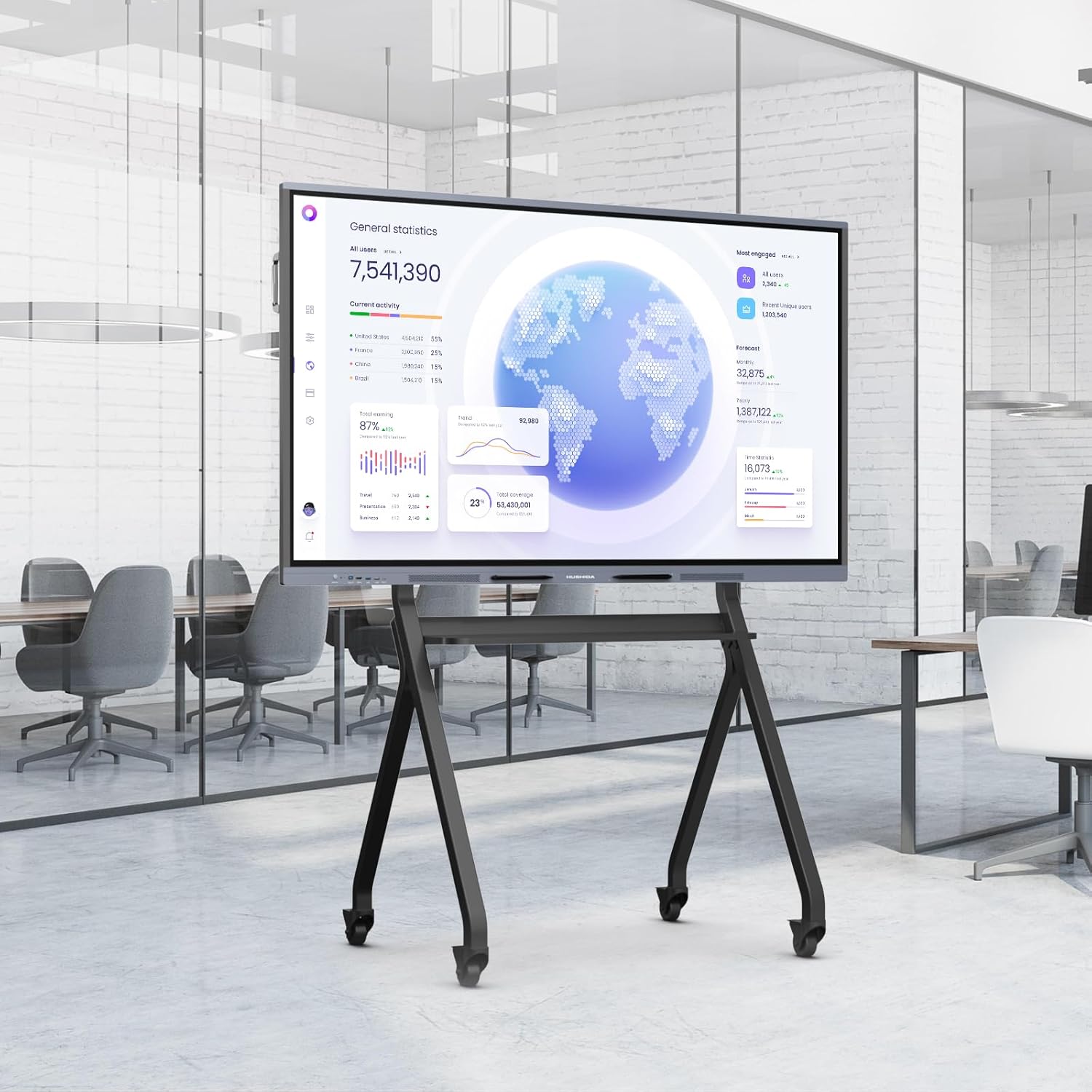 Mobile Smart Board Portable Stand and Rolling Floor TV Cart for 65-86 Inch Interactive Whiteboards or TV, Lockable Wheels, for Home Office School Classroom