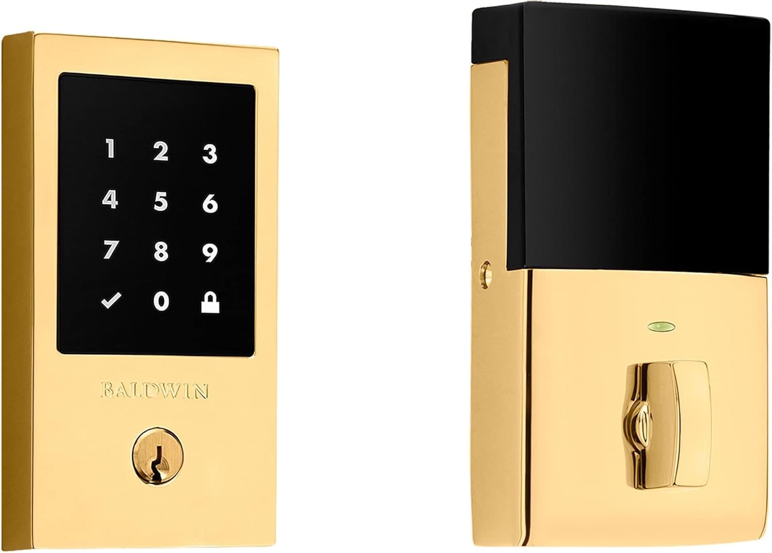 Single Cylinder Keyless Entry: Lock and unlock the deadbolt using your cell phone, smart device or a traditional key. To lock or unlock the interior, simply use your device or the standard thumb turn. It has the versatility of keyless operation while still retaining the functionality of keyed entry and is a great addition to any smart home. It's perfect for front doors, side or back doors, and garage entry doors. Features: Wirelessly communicate with security and home automation systems via Z-Wave Technology BHMA Grade 2 certified Constructed of solid brass for and durability Installs easily with all necessary mounting hardware included Covered by Baldwin's limited mechanical , and 1 year electronic Standard finishes have a 1 year limited for exterior applications and a 5 year limited for interior applications Up to 30 customizable user codes with 4-8 digits each Secure Screen Technology provides additional security 20 minute UL deadbolt rating Wirelessly communicate with security and home automation systems via Z-Wave Technology Product Technologies: Solid Brass Construction: Baldwin Estate Series products are constructed from solid brass - providing a more luxurious, higher feel than door hardware made with lesser metals. When you hold a Baldwin product in your hand, you will immediately notice the difference that solid brass makes it is heavier, stronger, and smoother than most of the door hardware on the market today. Finishes™: Baldwin's multi-patented Finishes™ provide unprecedented protection against the effects of weather, normal wear and tear, and even the rigorous test of coastal salt air. By adapting the vapor deposition processed used to create premium gold pens, Baldwin creates a unique surface across your door hardware that is guaranteed to withstand the ravages of time