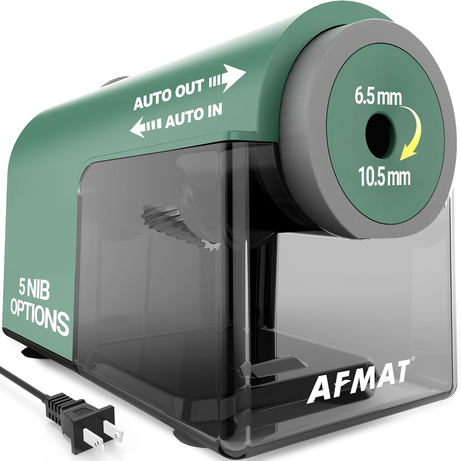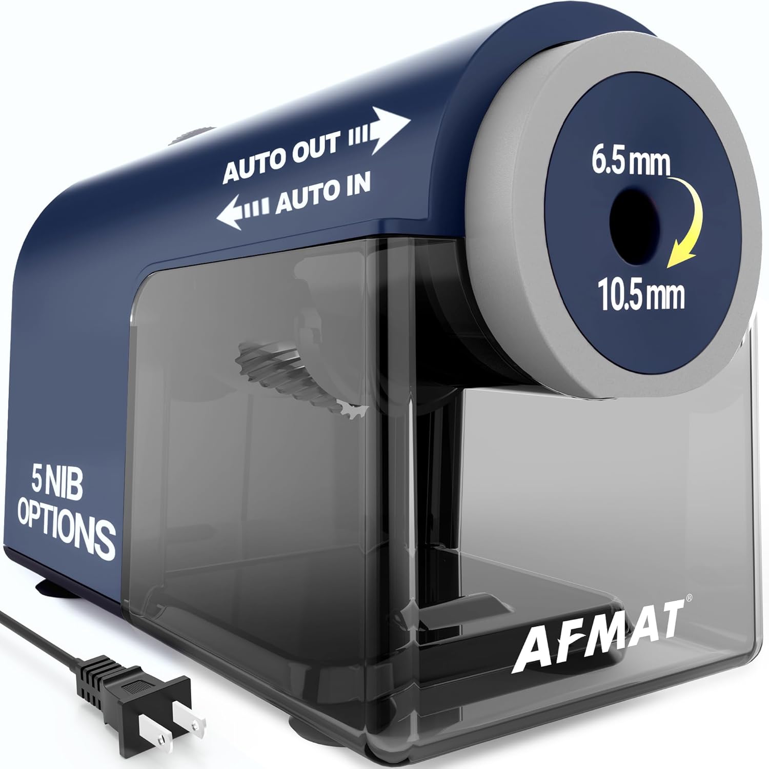 More Expensive, Here Are The Reasons Why Makes It Worth Your Money: 1. UPGRADED FULLY AUTOMATIC PENCIL SHARPENER: We spent 2 years refining every detail to deliver peak performance and simplify your sharpening routine—just insert your pencil, and the sharpener will auto-feed, sharpen, and auto-eject the pencil within seconds. This hands-free operation ensures safety, eliminates hand fatigue, and significantly reduces lead breakage by ensuring stable, consistent sharpening pressure, making it perfect for kids, individuals with arthritis, or anyone prioritizing convenience. 2. LARGE HOLE COLORED PENCIL SHARPENER: Equipped with a large-diameter sharpening hole, this color pencil sharpener fits almost all pencil types and shapes, including 2B/HB, graphite/colored pencils, sketch and charcoal pencils (φ6.5-10.5 mm), as well as standard round, oval, and hexagonal shapes. This is a truly universal pencil sharpener for artists, professionals, students and teachers. (Note: If there are uneven tips, please check if the pencil core is off-center.) 3. INNOVATIVE 5 ADJUSTABLE SHARPNESS PENCIL SHARPENER: Unlike most automatic pencil sharpeners that only offer 3 sharpening settings, this sharpener features an innovative 5 sharpness adjustable settings. Select from 5 pencil tip sizes by rotating the gear on the top of this electric pencil sharpener for various needs like writing, sketching, technical drawing, and shading. It is a comprehensively functional electric pencil sharpener adapts to students' homework, teachers' lesson plans, and artists' creations. (Note: For extra soft pencils, please choose the bluntest setting to avoid pencil lead breakage.) 4. LIGHTNING FAST PENCIL SHARPENER: This electric pencil sharpener sharpens a used pencil in just 3 seconds and a brand-new pencil in 5 seconds. Whether you're prepping pencils for a lesson in a classroom or tackling a creative project, this pencil sharpener for classroom cuts down waiting time drastically, ensuring you never pause for a dull pencil again - Far quicker than traditional manual pencil sharpeners. 5. DURABLE PENCIL SHARPENER FOR CLASSROOM: This electric pencil sharpener has a powerful motor that ensures smooth and quiet operation every time, it can consecutively sharpen 500+ pencils without having to stop between every few uses like most pencil sharpeners that are born with overheat issues - perfect for heavy use in classroom full of students - Teachers must have! 6. HEAVY DUTY ELECTRIC PENCIL SHARPENER: Equipped with an industrial grade helical blade, this pencil sharpener delivers 3x longer lifespan than standard sharpeners, engineered to endure up to 10000 sharpenings without wearing, last for years. And the replaceable blade ensures years of consistent performance - an ideal, economical electric pencil sharpener for classroom, home, office, or studio. ASIN for blade: B0G4TZX4F5 7. LARGE SHAVINGS BIN & 4 SUCTION CUPS: This plug-in electric pencil sharpener has a much bigger see-through shavings bin than most pencil sharpeners and can hold a lot before needing to be dumped (with secure drawer-style closure, please reinserted the bin properly after emptying.) Plus, the 4 suction cups are strong enough to hold this heavy duty pencil sharpener in place during use.