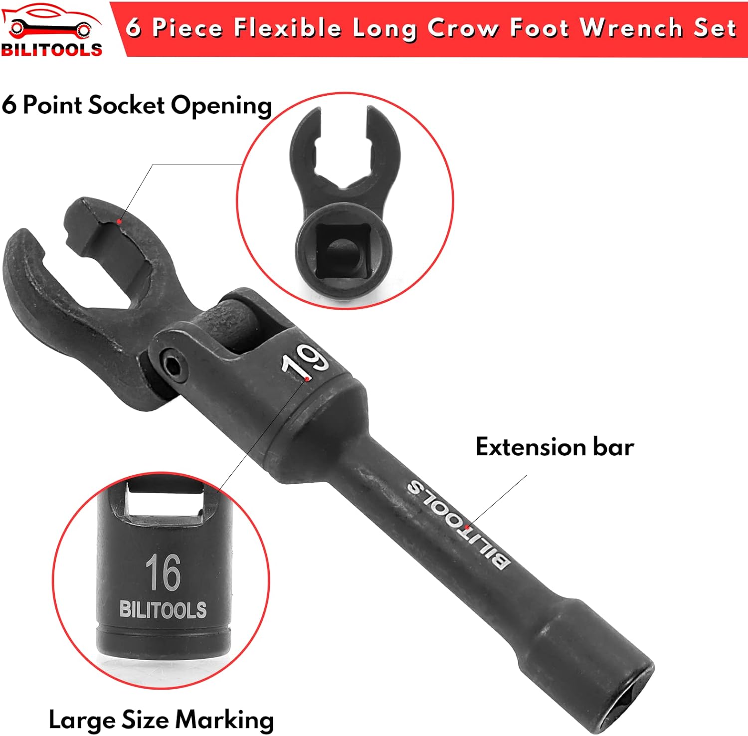 BILITOOLS Hose Pinch off Pliers, Plastic Hose Clamp Pliers Straight & 90 Angled, Hose Pinch Pliers for Flexible Hoses Fuel Line Radiator Hose Coolant Hose Brake Hose etc&Long Flex Head Crows Foot Line Wrench Set, 3/8" Drive Injector Fuel Line Crowfoot Flare Nut Socket Wrench Metric 12-19 mm