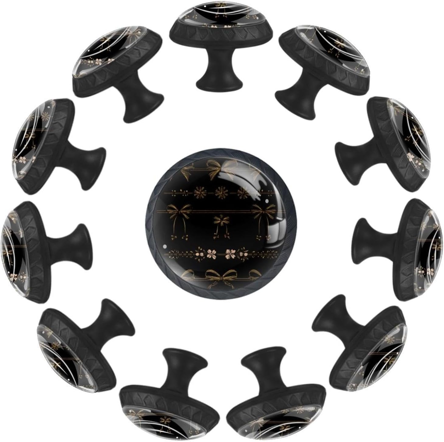 Upgrade your home decor with LORVIES Decorative Cabinet Knobs, Drawer Knobs, Cabinet Pulls & Drawer Pulls.Make them part of your home decor!These cabinet hardware & furniture knobs are the perfect size for your cabinets and drawers.The elegant and unique design, featuring diverse decorative patterns, adds a touch of sophistication to your cabinets.Not only are these kitchen cabinet knobs & bathroom drawer knobs functional, but they also elevate the style of any space.Whether it's your living room, kitchen, bedroom, or bathroom, these dresser knobs, wardrobe knobs & cupboard knobs are versatile and complement various decor styles. Product Information Material: ABS, Glass, Stainless Steel, Paper Size: 1.37" (Length) x 0.66" (Width) x 1.1" (Height) Weight: 0.28 Pounds / 0.13KG Base Color: Black Shape: Round with pattern edge Package Include: 12 x Cabinet knobs, 24 x Screws (Short x 12: 1.1" & Long x 12: 1.37") Notice ! ! ! Please measure and confirm the size of cabinet knobs & drawer knobs you need before purchasing. Please be careful when drilling holes. Manual measurements may be slightly inaccurate. Because of each computer display different colors may be related to physical and picture, hope to understand. LORVIES Service Provide you with a worry-free shopping, thank you! Any problems, please feel free to find up to us, we will try our best to help you solve your problems. Customer service time: Monday to Friday (9.00am-6:00pm) (GMT+8)(Due to the time difference, please allow us 24 business hours to get back to you. Thank you!)