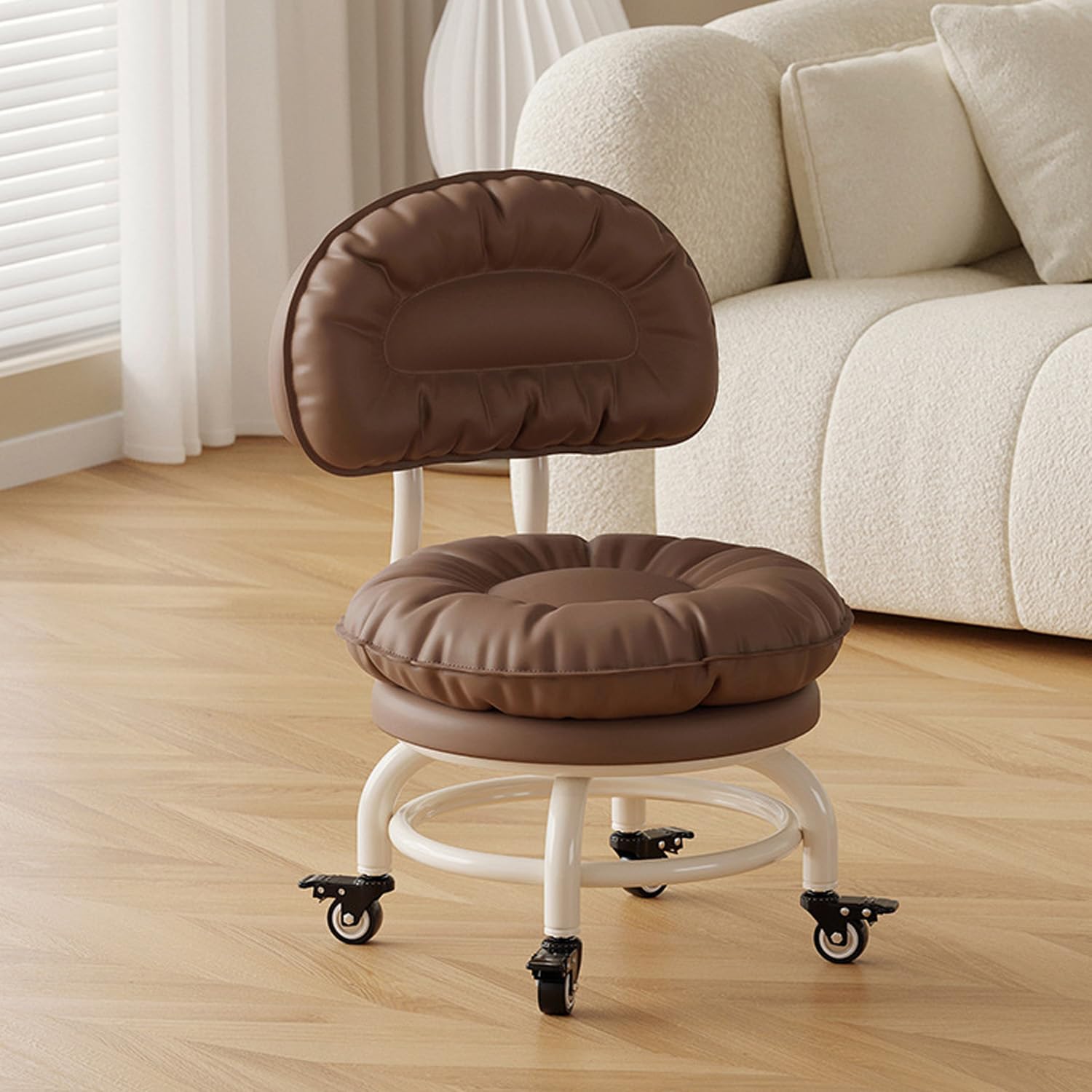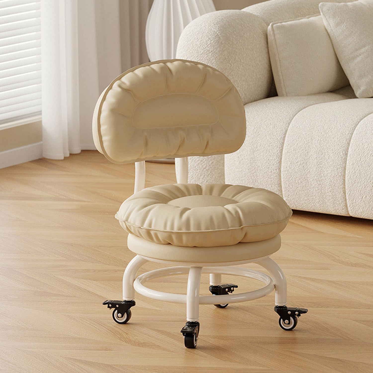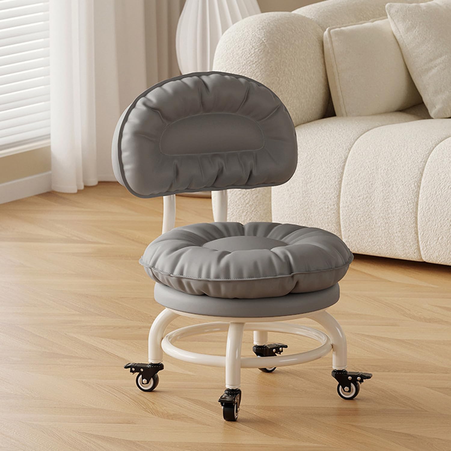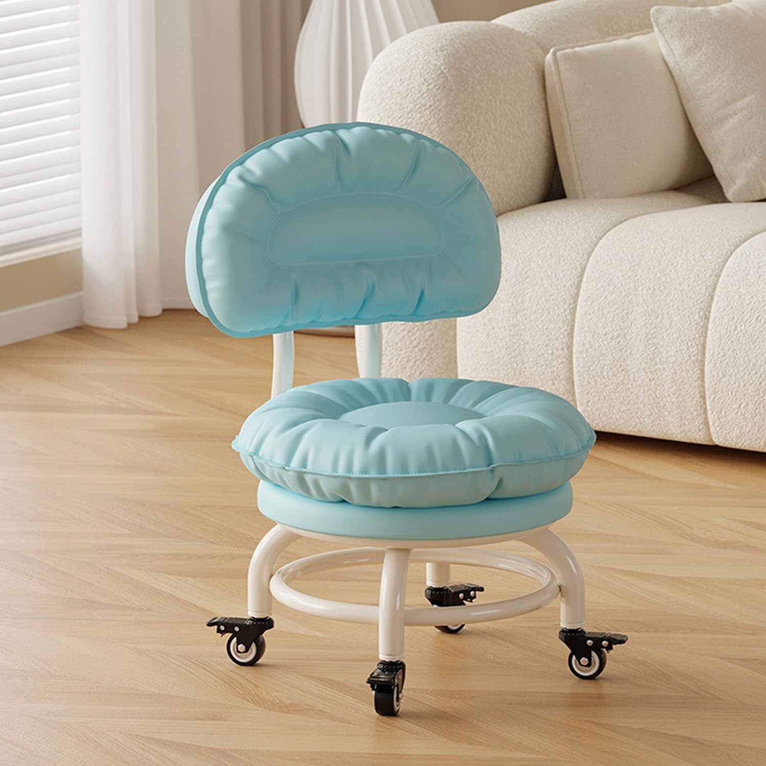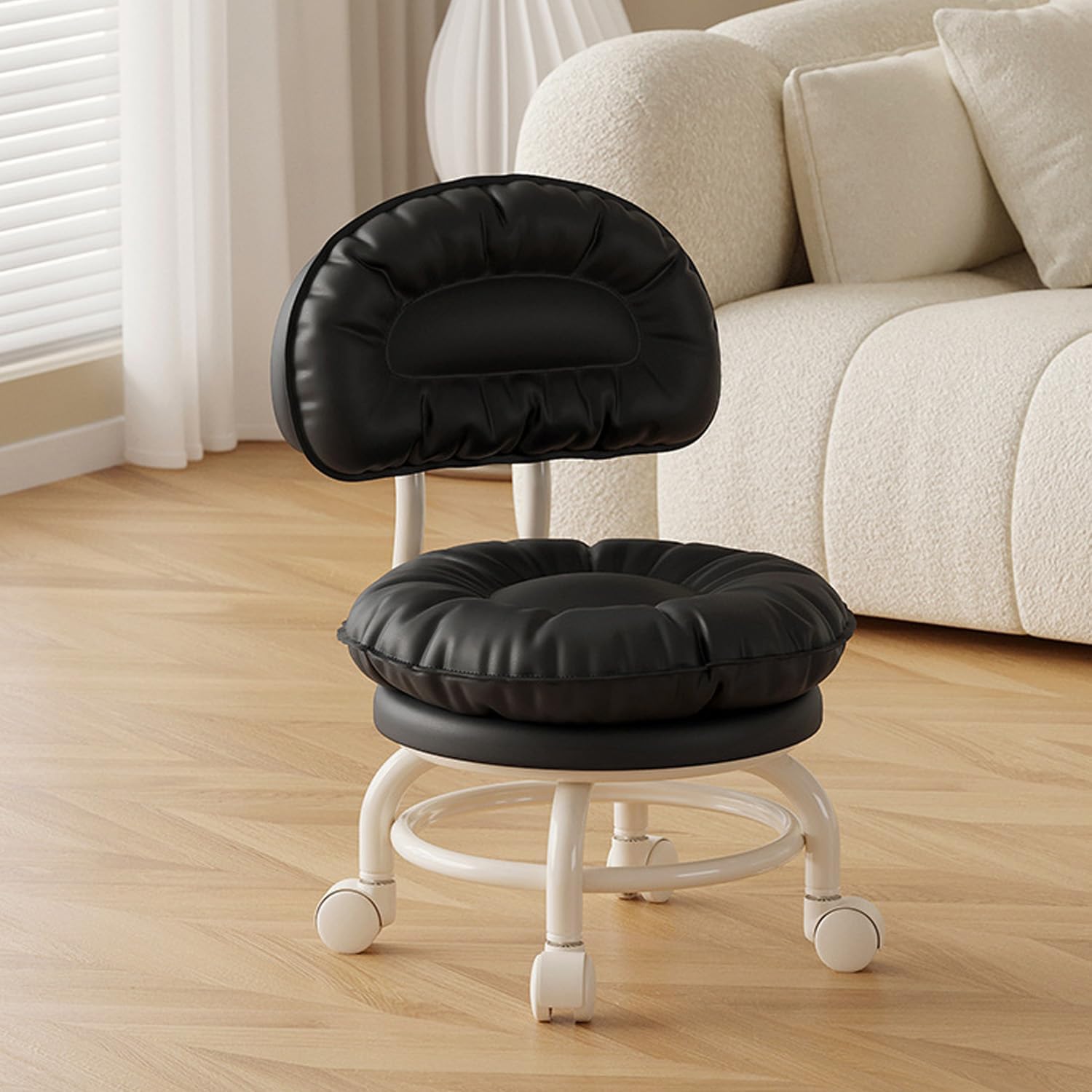 Backrest Rolling Stool with Brakes Roller Chair Heavy Duty Rolling Stools with Wheels for Home Office Garage Mechanic Flooring Cleaning ShopType A: Wear-resistant and scratch-resistant wheelType B: Bearing wheelType C: Brake wheelThickened carbon steel frame provides a stable and strong load-bearing structure. Double-layer ring reinforcement ensures a secure grip on the four legs, distributing load evenly and preventing tipping. Constructed from thickened iron pipes, it's welded together for a secure fit even for those weighing more.Ultimate Comfort, Timeless Elegance: Redefining Seating SophisticationWelcome to an unparalleled seating experience where craftsmanship meets contemporary design. Introducing a chair that not only elevates your relaxation but also adds a touch of style to your space.Fashionable Aesthetics: A blend of simplicity and sophistication, the chair's refined appearance complements your interior decor seamlessly, making it a perfect addition to any space.Versatile Applications:Home Office Oasis: Enhance your workspace with added comfort, promoting increased productivity.Leisure Reading Nook: Create a cozy corner for unwinding and enjoying peaceful reading moments.