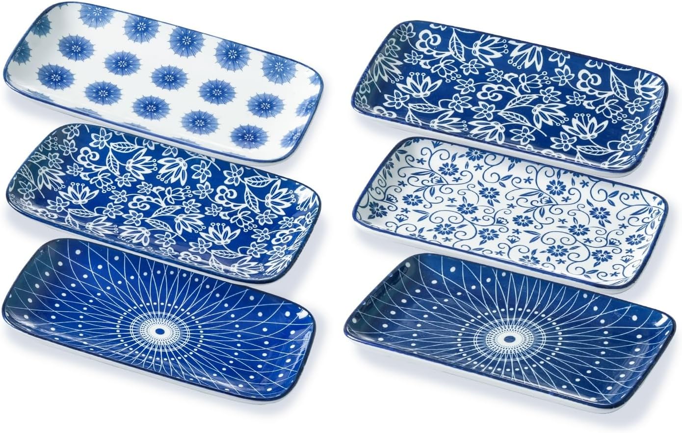 • EXQUISITE CRAFTSMANSHIP:Meticulously crafted from premium porcelain and fired at 1250°C, this set of 6 rectangle sushi plates guarantees safety with its lead and cadmium-free composition. Engineered to endure dishwasher, microwave, oven, and freezer use, these plates ensure outstanding durability and resistance to breakage, making them ideal for daily use.