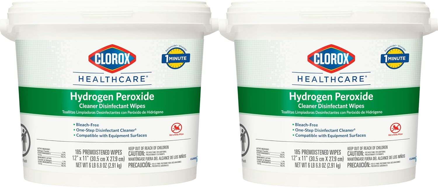 Product Description Great surface compatibility, less residue. Clorox Healthcare Hydrogen Peroxide Cleaner Disinfectant Wipes leave no harsh chemical odor or fumes and kill bacteria and viruses in 30 seconds*. Disinfect with one wipe that is registered to kill C. auris, 13 antibiotic resistant pathogens and multiple strains of MRSA. This ready to use broad spectrum disinfectant has a noncorrosive formula suitable for cleaning medical devices, common areas and high touch surfaces made of materials like stainless steel, painted metals, glass, chrome, glazed tile, plexiglass and sealed fiberglass. These Clorox Healthcare hydrogen peroxide wipes are ideal for daily use in healthcare settings including hospitals, medical facilities, outpatient facilities and long term care facilities. This large bucket makes it easy to just pull, wipe clean and toss and can be refilled and reused. *See label for organisms. Manufacturer Contact Information 1-800-234-7700