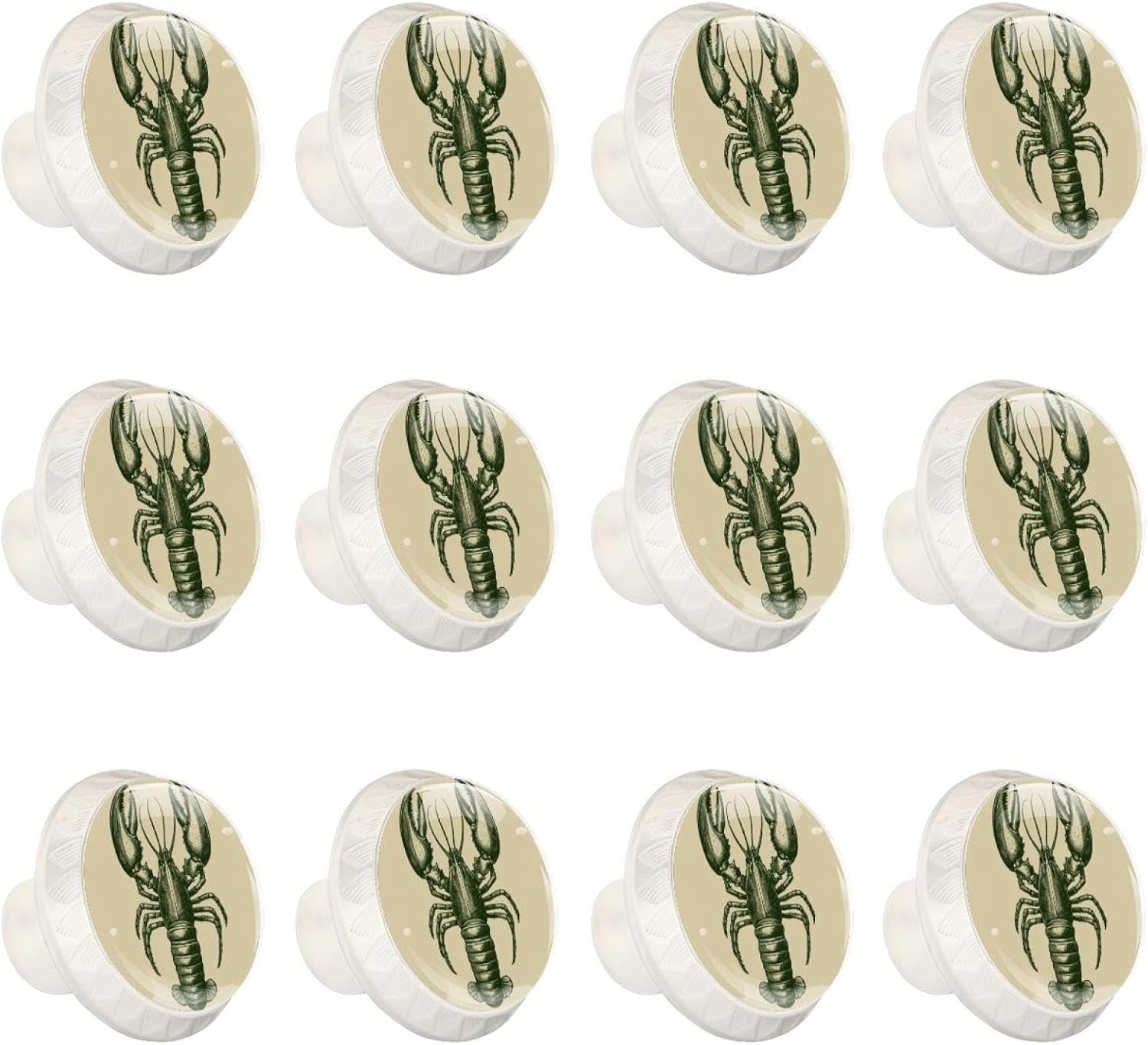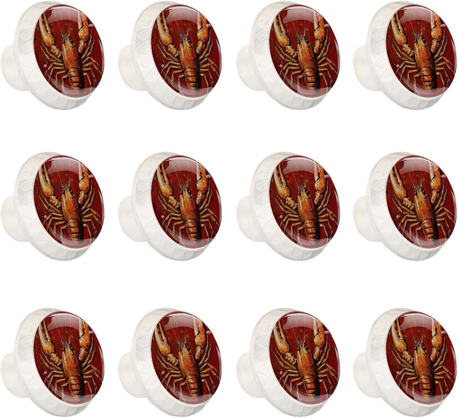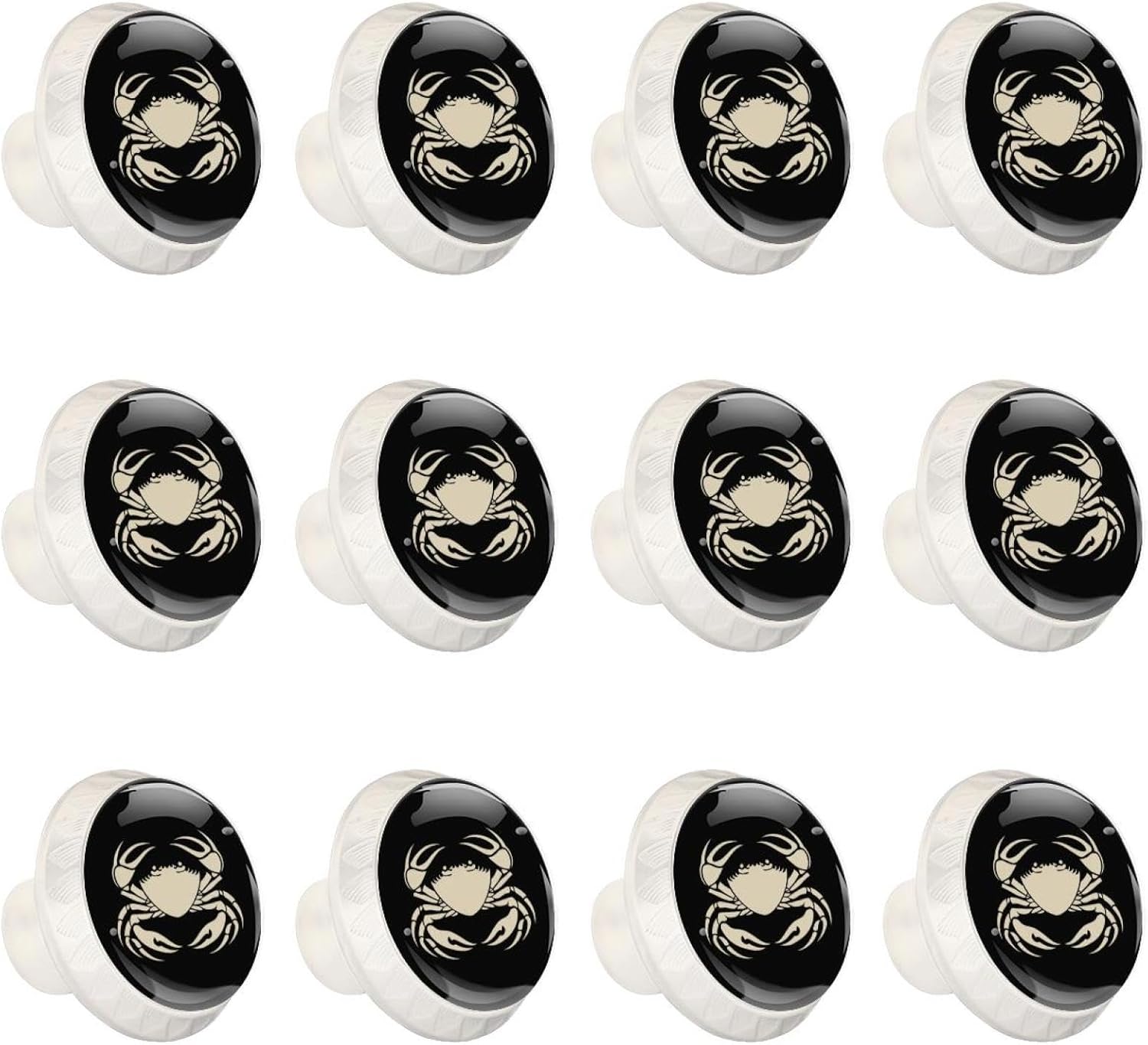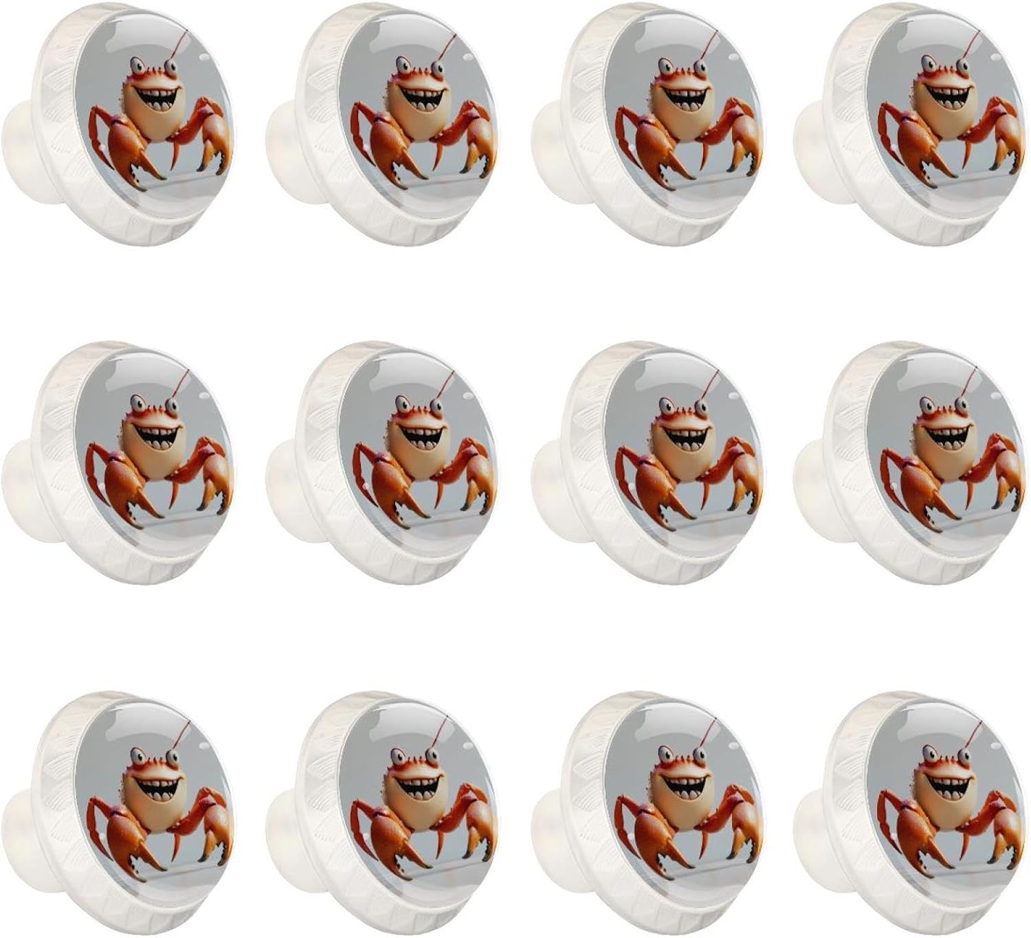 Crab (5) Decorative Cabinet Knobs, Crystal Glass Drawer Knobs with Screws, Furniture Hardware for Kitchen Bathroom Dresser Cupboard Wardrobe