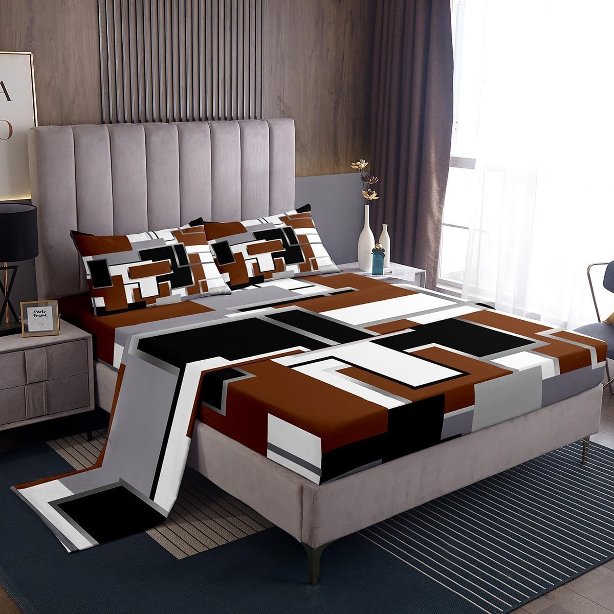 Size Information Twin size: 1 Fitted Sheet 39"x75"x16", 1 Flat Sheet 96"x66", 1 Pillowcase 20"x30". Full size: 1 Fitted Sheet 54"x75"x16", 1 Flat Sheet 96"x81", 2 Pillowcases 20"x30". Queen size: 1 Fitted Sheet 60"x80"x16", 1 Flat Sheet 102"x90", 2 Pillowcases 20"x30". King size: 1 Fitted Sheet 78"x80"x16", 1 Flat Sheet 106"x90", 2 Pillowcases 20"x36". Versatility We have many kinds of styles for you to choose. You can easily find a product that suits the style of your room. The item is not only Suitable for your home, bedroom, guest room, living room, etc or rv, your families, friends, relatives, boyfriend, girlfriend. Modern Design The luxury aesthetic bedding sheets are made reactive printing and dyeing process. The pattern is clear, the color is and bright, which will not fade after repeated washing. Personalized As a manufacturer of digital printed home textiles, we follow current trends and bring you the latest and stylish home textile products. The item will make the room decorated in exquisite taste.