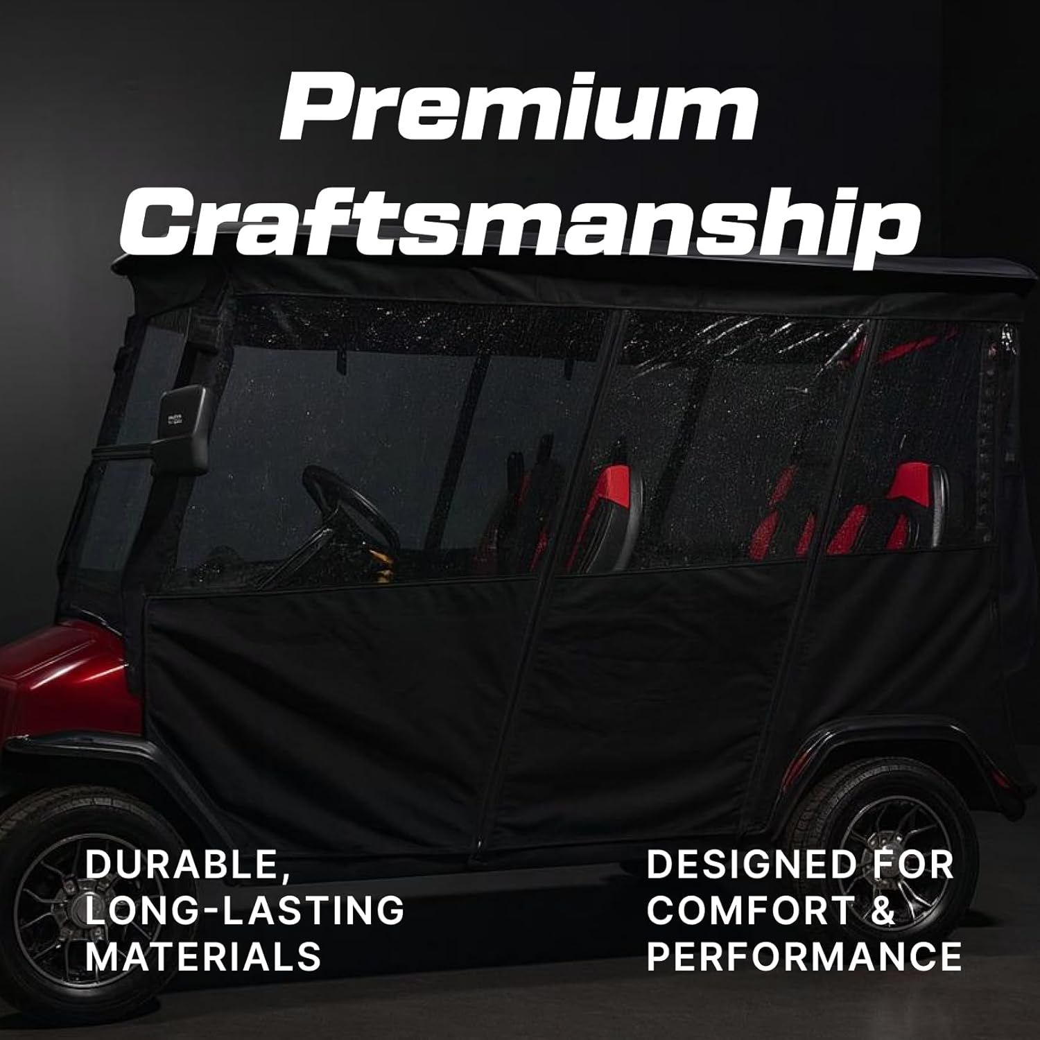 • Installation Guidance: Specifically designed for Evolution D5 Ranger and D5 Maverick 4-passenger golf carts with rails, this premium rain enclosure delivers a stable, windproof fit. Watch the installation video before setup to ensure a smooth installation and a long-lasting, weather-tight seal.
