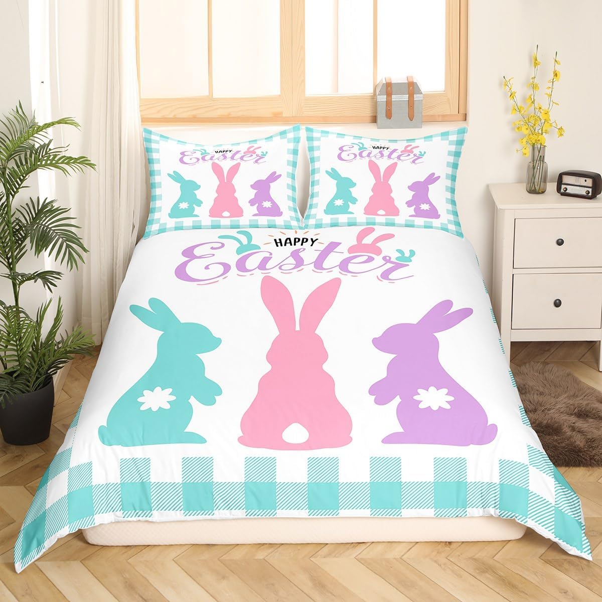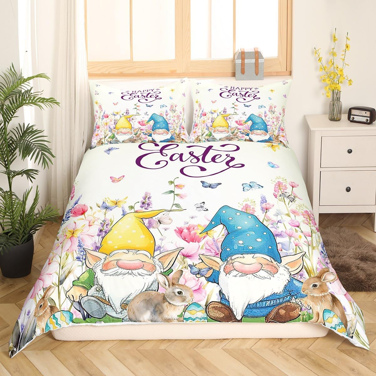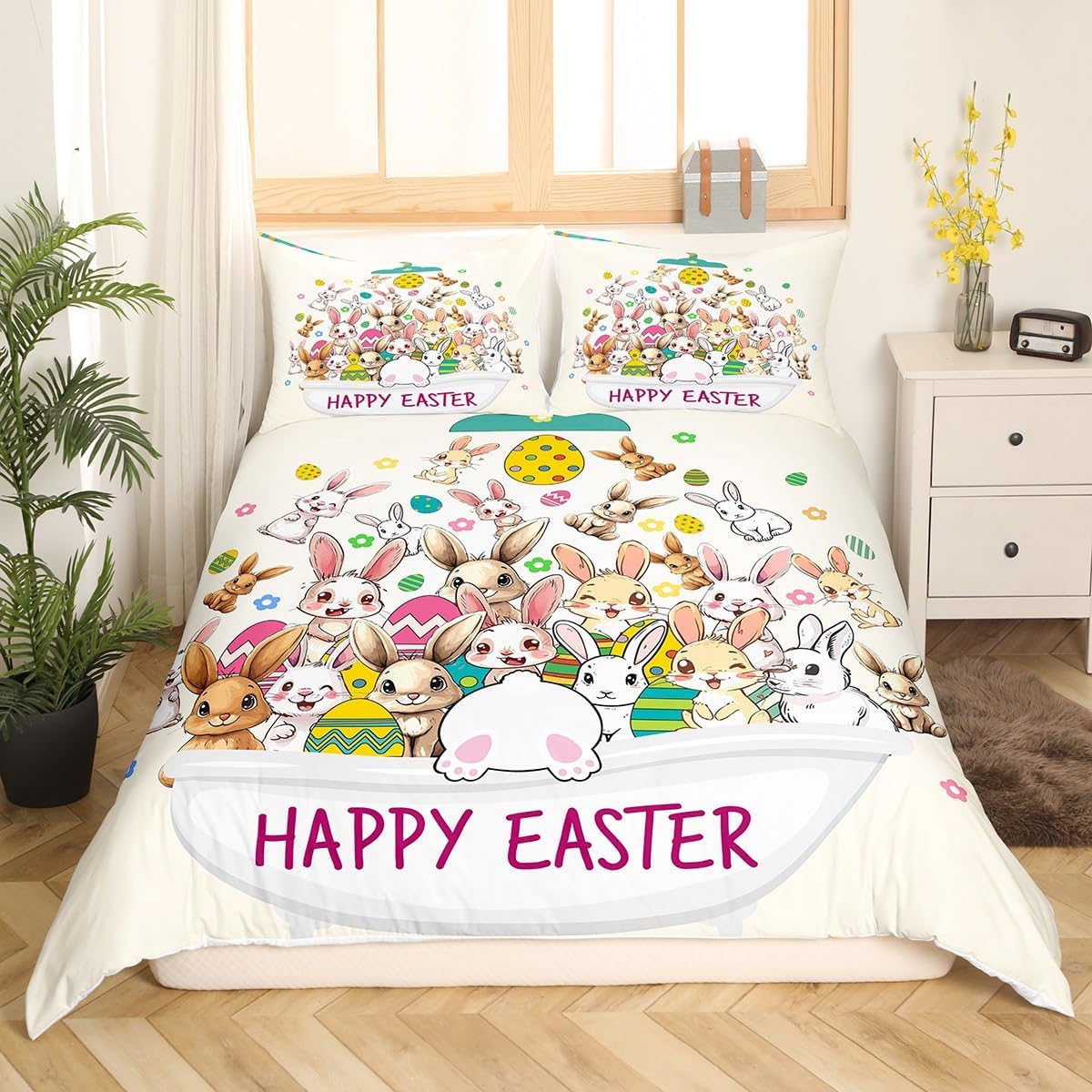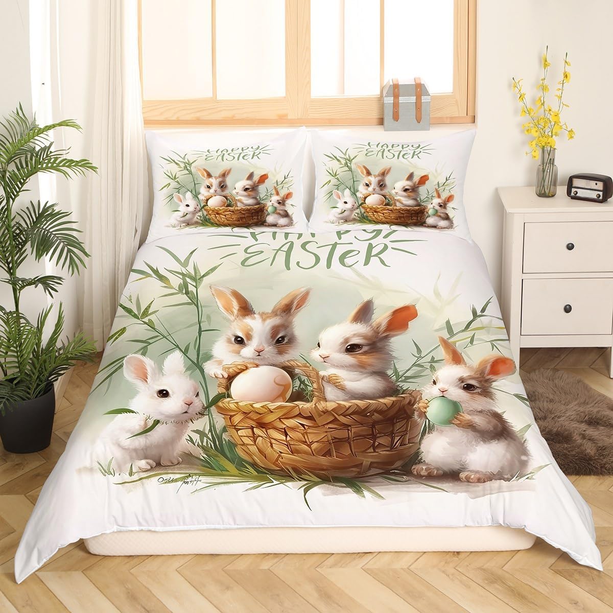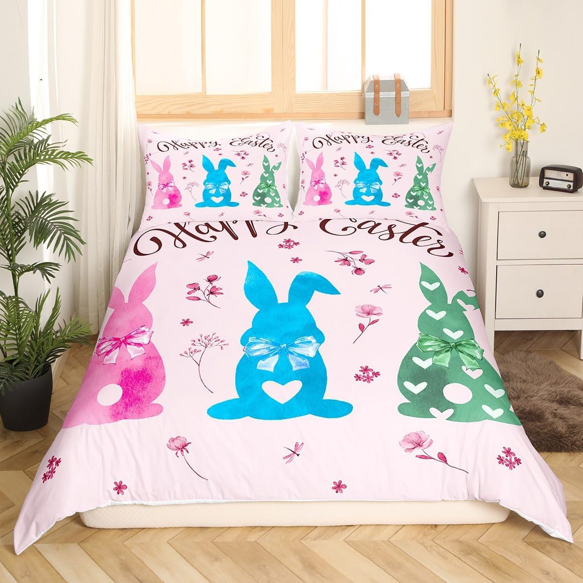 Feelyou Easter Cute Bunny Bedding Set Full Size Spring Flower Duvet Cover Set for Boys Girls Butterfly Comforter Cover Set Spring Holiday Bedspread Cover 3Pcs