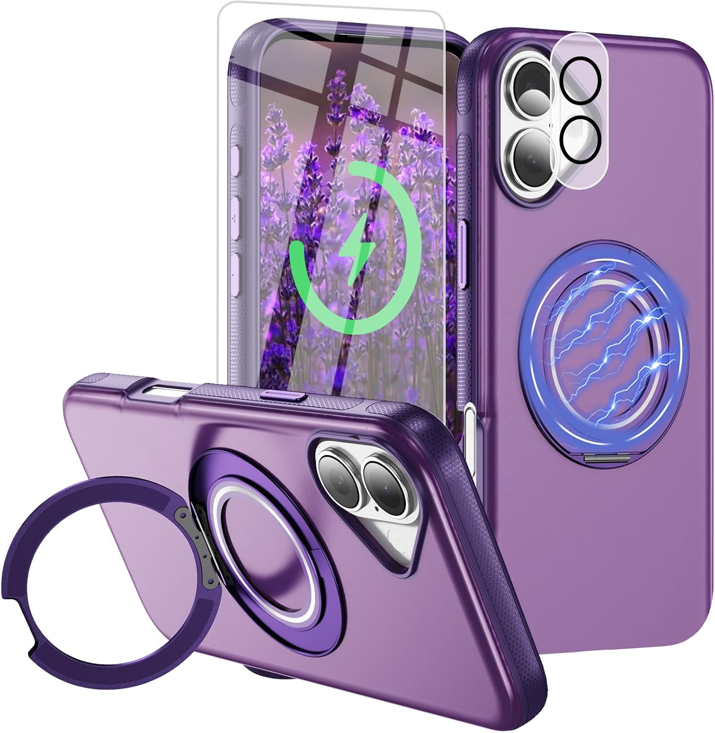 for iPhone 16 Pro Max Case with Screen Protector & Lens Protector [15 FT Military Drop Protection] Magnetic Kickstand Compatible with MagSafe Slim Translucent Case (Deep Purple)