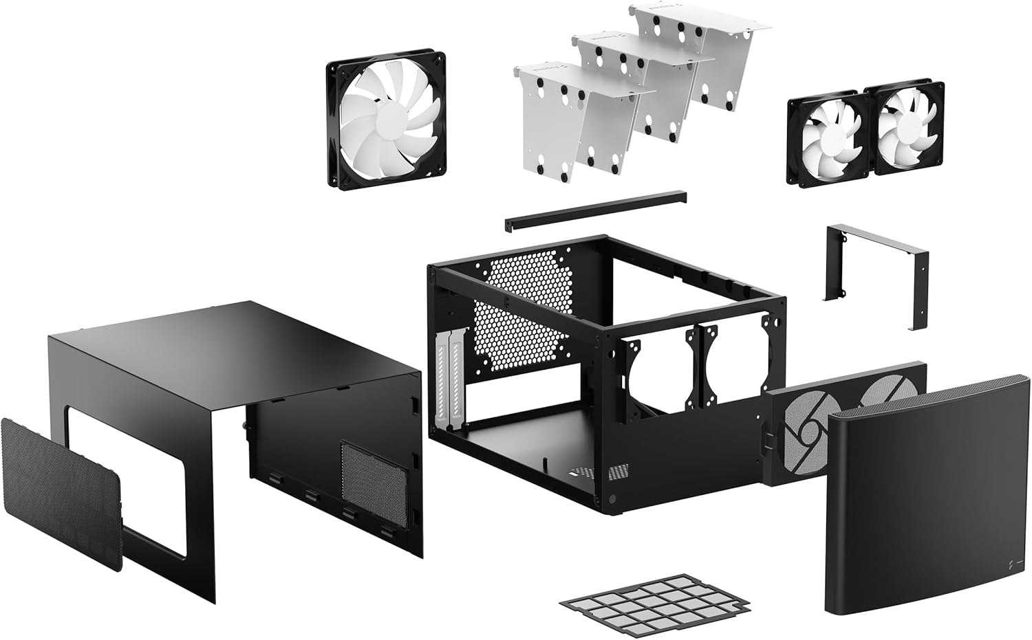 Fractal Design Node 304 - Black - Mini Cube Compact Computer Case - Small Form Factor - Mini ITX – mITX - High Airflow - Modular Interior - 3X Fractal Design Silent R2 120mm Fans Included - USB 3.0