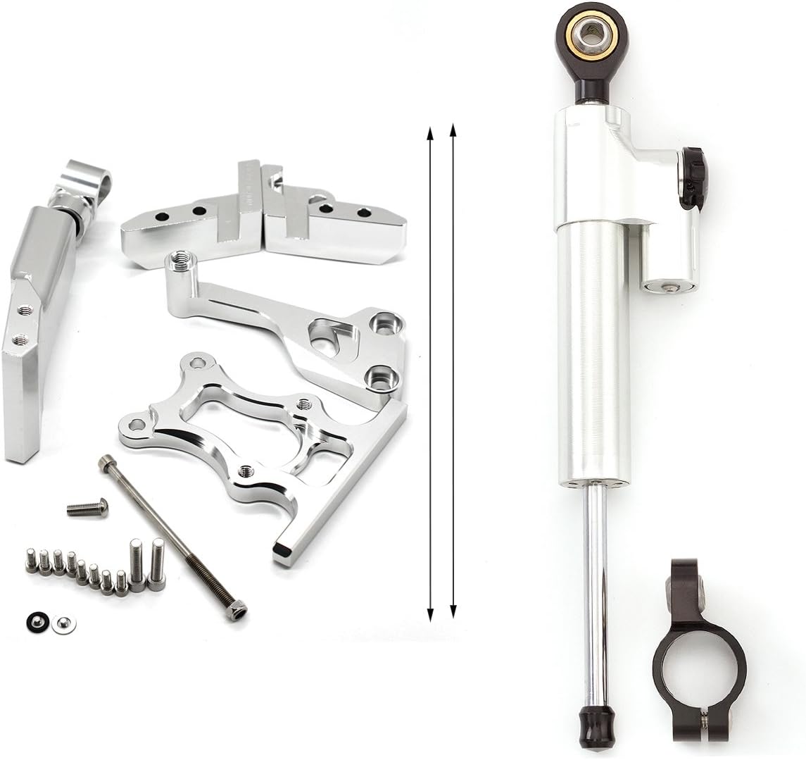 Fitment: for MT07 FZ07 MT-07 FZ-07 2014-2019, XSR 700 2015-2019 Feature: 100 % brand new Material:T6061-T6 Aluminum (High Quality Material, Light grade & Light-weight) Finish: CNC & Anodized (durable and not easy to fade) Color : Show as pictures If you need other colour,please leave me a note after payment, thanks! Weight: 1 LB Others: Perfect fit and no modification is needed, No installation instructions Extraordinary advantages: 1.His risk is minimal. High stability 2.The dampers are fully adjustable and can be adjusted in 22 positions so there will be a position for every rider 3.The twin-tube clamp ensures that the clamping force of the tube clamp does not obstruct the piston 4.Nitrogen pressurised heat expansion reservoir prevents the forming of air bubbles 5.Mounting kits went through countless tests through any riding conditions Package Included: 1x Adjustable Steering Damper & Stabilizer Mounting Kit Full Set Note: 1.After installation, turn the head to the very right and very left to check whether there is enough room for the activity of steering damper or not 2.Check if the steering damper and its kit reach the motorbike or oil tank his kind of risk to a bare minimum. Tank slappers and vibrations are intercepted by the damper About after-sales service: Provide three months free warranty We provide high quality products and best service to each customer Everyone, If you have any questions, please do feel free to connect with us