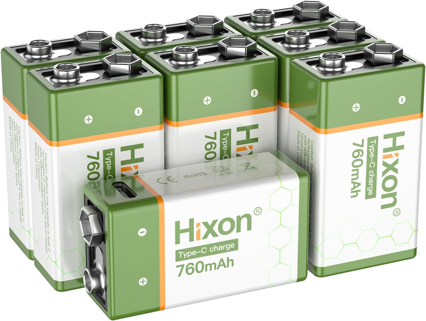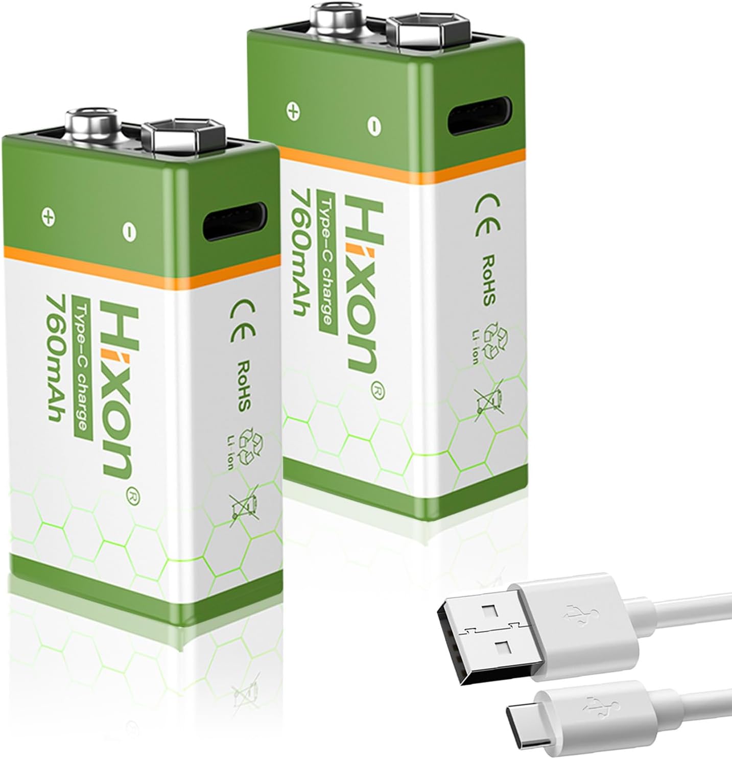 | BuiltIn Media | 4 Pack 9V Rechargeable Li-ion Batteries, USB - Type C Charging Cable |