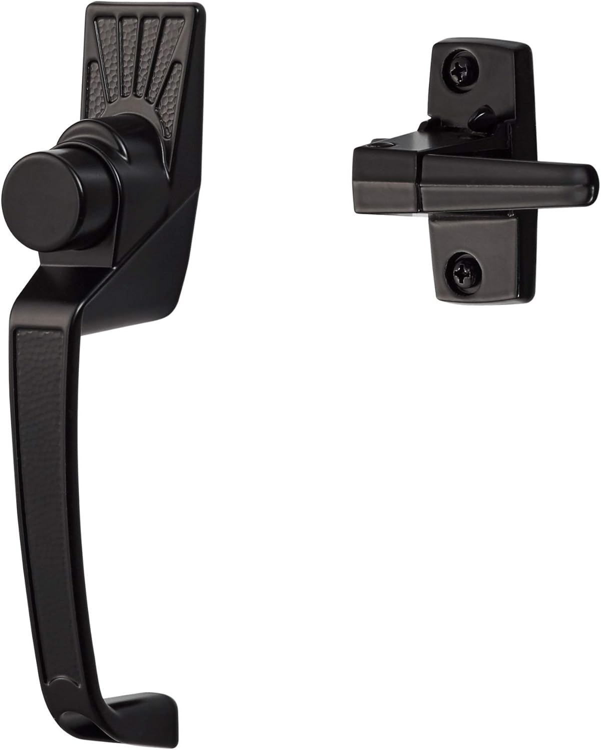 • Push Button Functionality: With the push of a button, this classic exterior door handle allows seamless entry without compromising curb appeal, giving both function and form to your storm or screen door