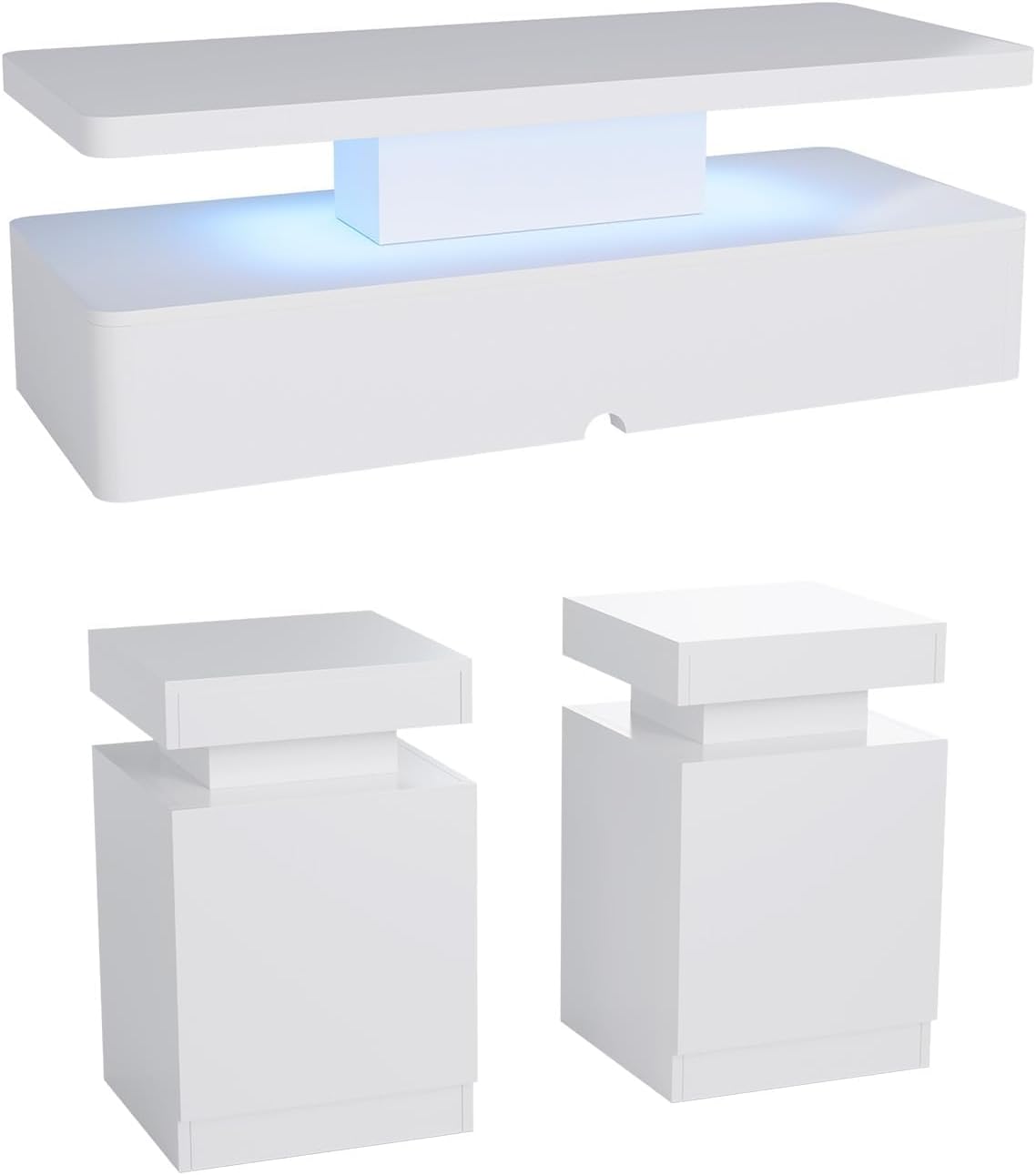 • Spacious and Organized Storage - Features a TV stand with cabinets, a double-tier coffee table and 2 side tables with deep drawers, providing ample space for books, magazines, and accessories while keeping surfaces clutter-free