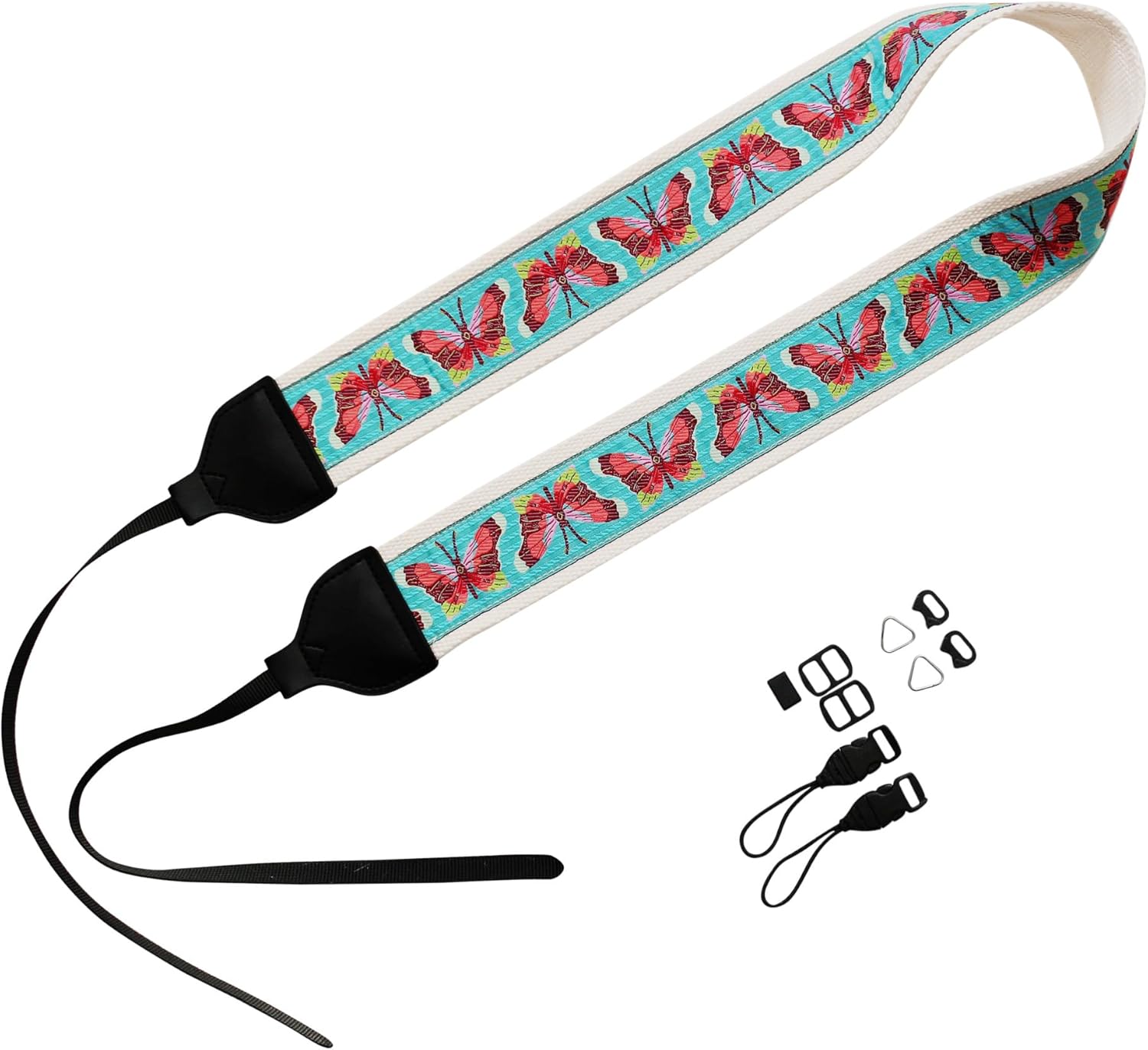 UNIKSTRAP Original Design Adjustable Camera Strap Rococo Style Embroidery " Floral Organza ", 2 Inch (5cm) Width, Fit for Canon Nikon Sony Interchangeable Lens Digital Camera/DSLR / Rococo Style Embroidery "Floral" Patterned Organza Shell Fabric with Genuine Leather Strap End, Fit Your Camera Well. / Material: Embroidery Organza Ribbon (out side) + Heavy Duty Cotton meshbelt (inner side) + Genuine Leather Strap End / Length: 100cm~120cm (39.5 inch~47 inch) adjustable, Width: 5cm (2 inch), Thickness: 0.4cm / 2 Sets Of Camera Strap Adapter Included ( The Camera and Lens in the photos are not included )