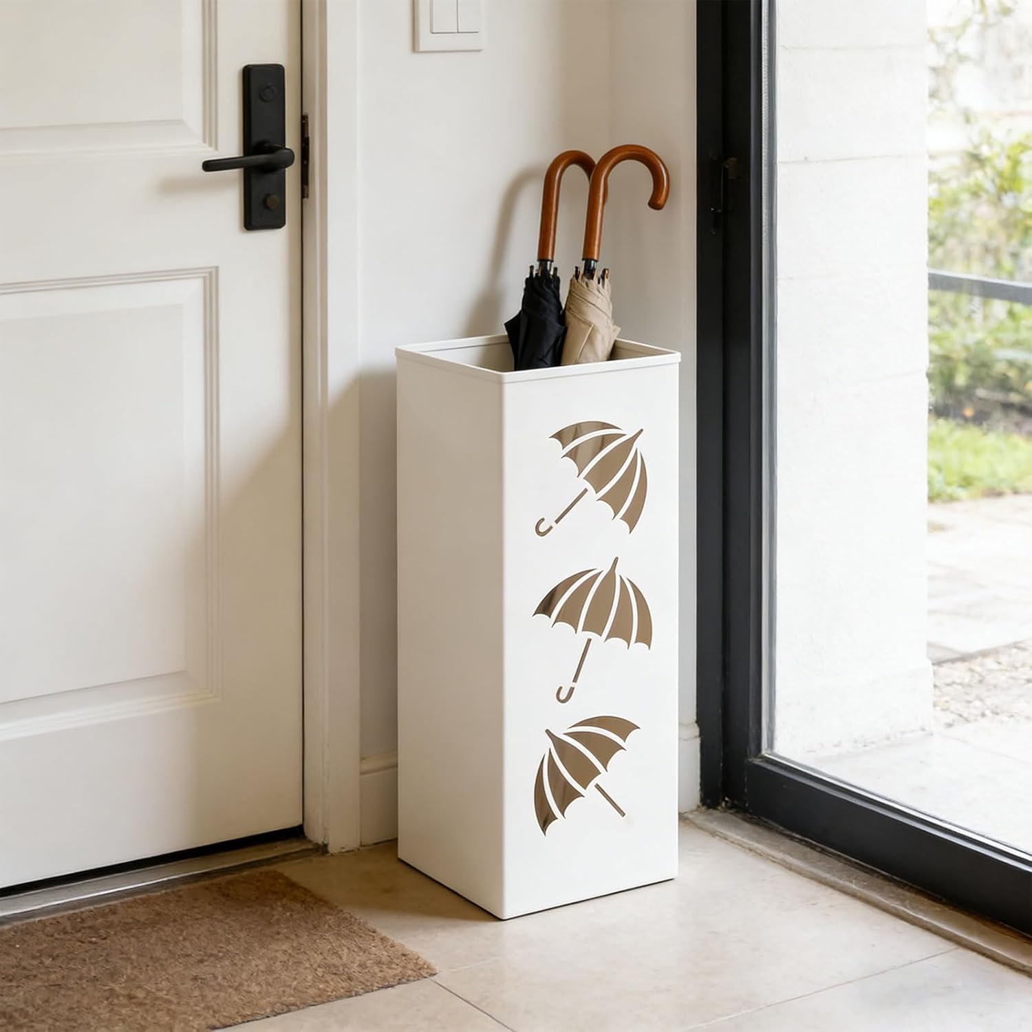 • Quick Drying Design: The decorative raindrop patterned openings improve distribution, allowing wet umbrellas to dry faster This functional yet attractive fashion keeps your area tidy and appealing