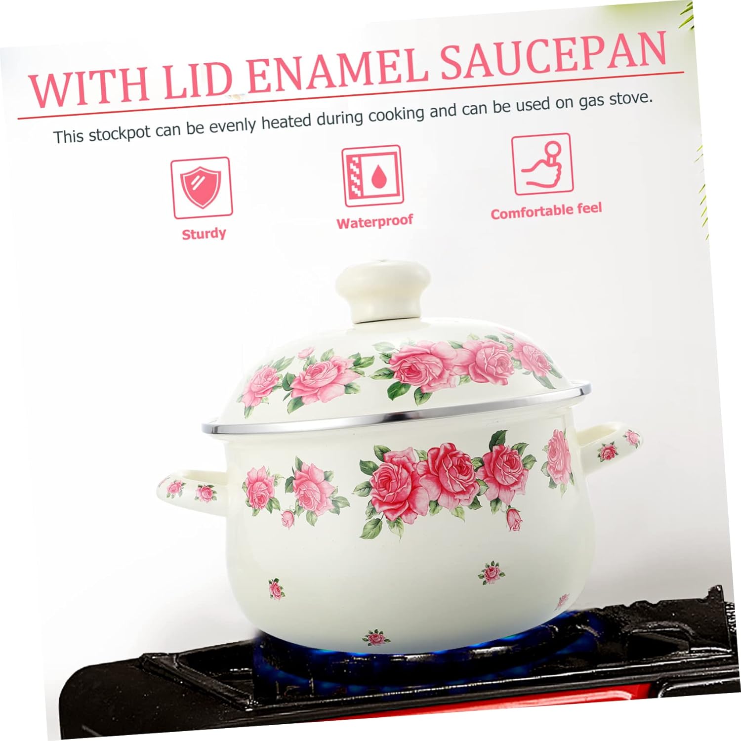 Package List 1 x Enamel Stew Pot Features -Color: Pink enamel pans for cooking - Size: 20.00X20.00X19.50cm/7.86X7.86X7.66in Enamel Soup Pot -Material: Enamel Old-fashioned Stew Pot -It can not only the taste of the food, but also can beautify your Supply. -Having high temperature resistance trait, the stew pot is and stew pots with lids. -The soup pot is fast heating of food, energy saving, and slow heat dissipation enamel stockpot with lid. -The retro pattern on the pan can remind you of the past and has a decorative effect enamel pot with lid. -Ergonomic design provides a comfortable holding and prevents heat generation Dual-handle Cooking Pot.Goods Descriptionenamel stockpot with lid Two side comes with handles, which the comfort for your holding.Dual-handle Cooking Pot Simple and convenient to cook with it.Enamel Pot Are you looking cooking pot? want to make delicious soups for your families? This stew pot will be