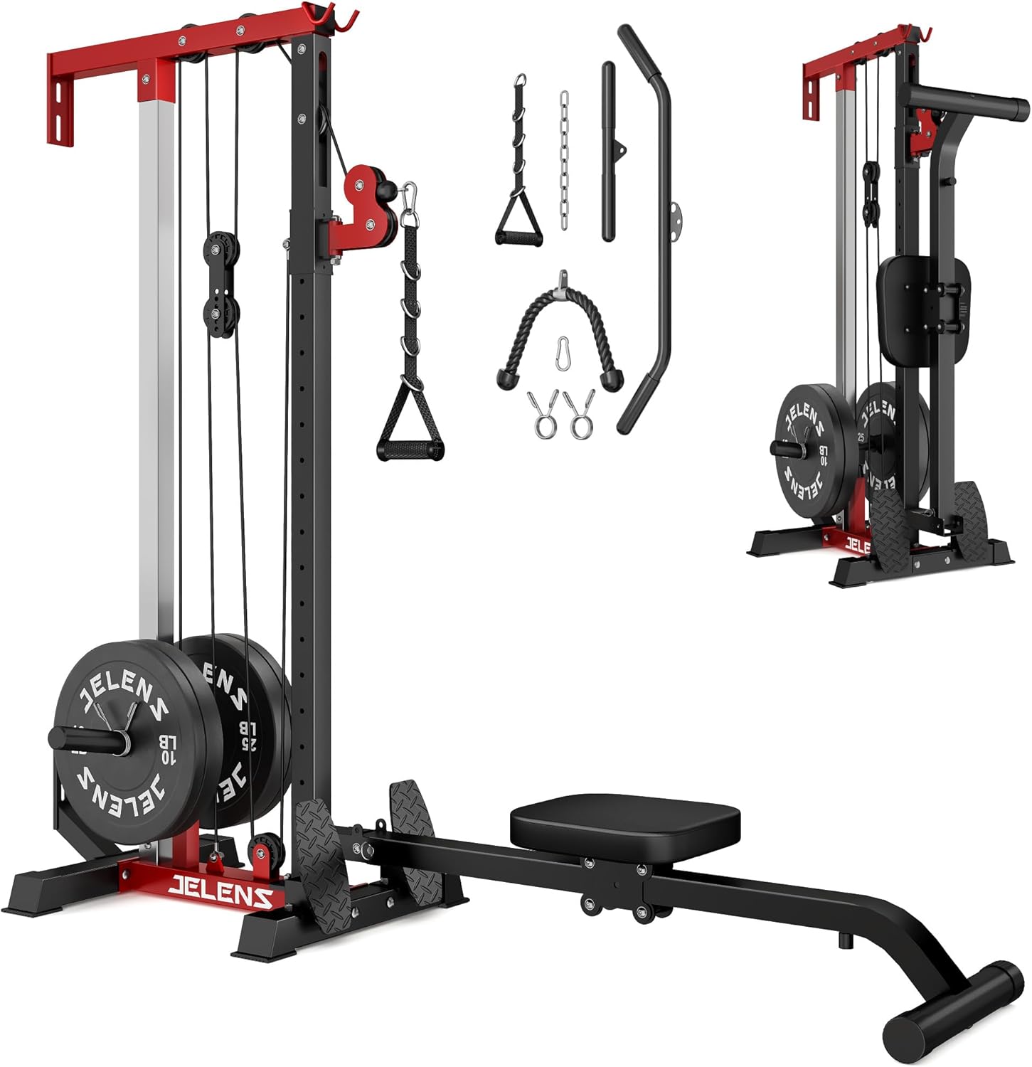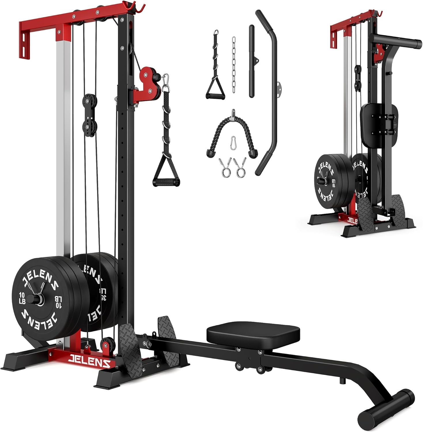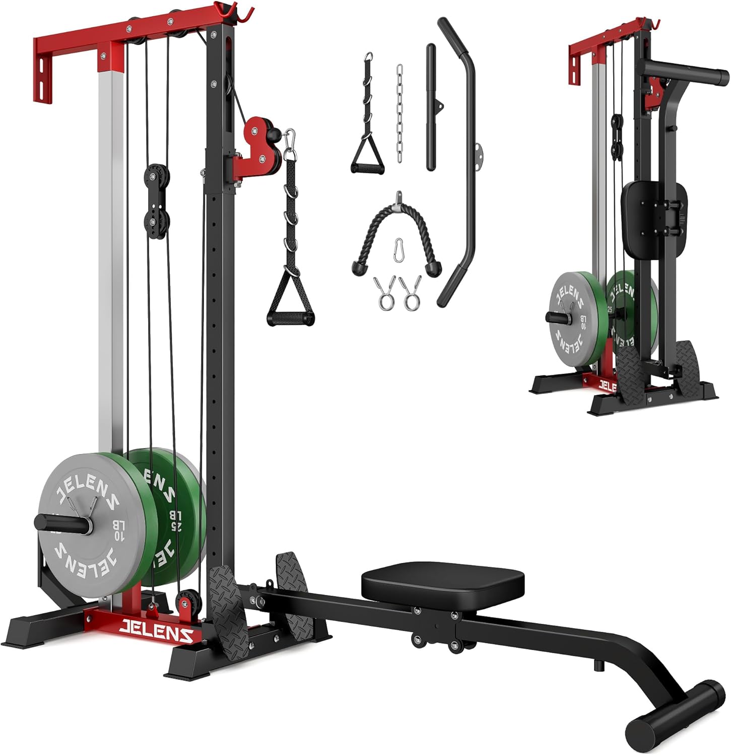JELENS RC01 Foldable LAT Pulldown Machine with Adjustable seat, Wall Mount Cable Station with 16 Adjustable Positions, Cable Machine Home Gym 2 in 1, Functional Trainer with Rowing and LAT Pulldown