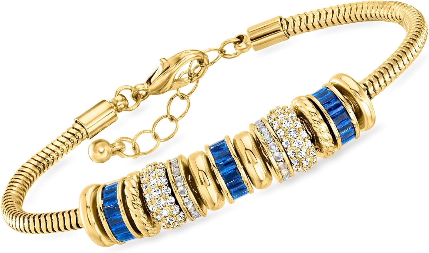 Ross-Simons presents contemporary styles with a timeless appeal. Unique and dynamic like you, Luxe Look designs were born to bring out bold self-expression. Our well-priced 14kt yellow gold-plated bracelet hosts a bright mix of bead charms studded with simulated multicolored gems. Features a sleek snake chain with a lobster clasp and 1" extender for your ideal fit. Wear it any way you want -- you're the artist of your aesthetic.