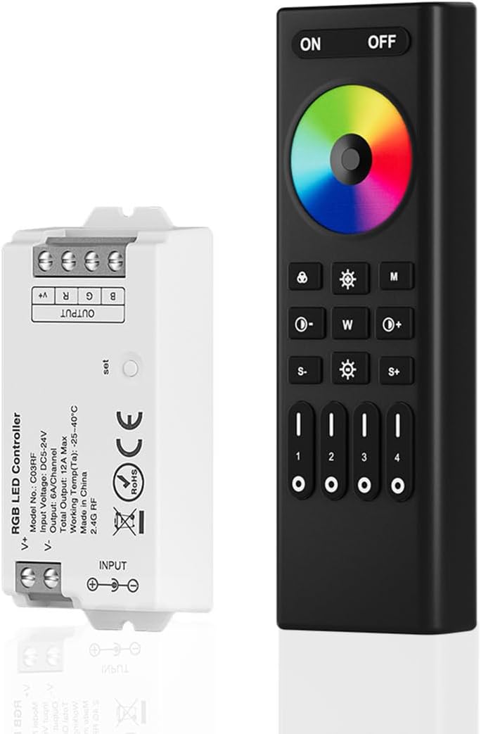 | Included Components | RC01RFB remote, C01RF Tuya controller, RF remote bracket, 2 screws, double-side adhesive, RC01RF remote control manual, C01RF controller manual |