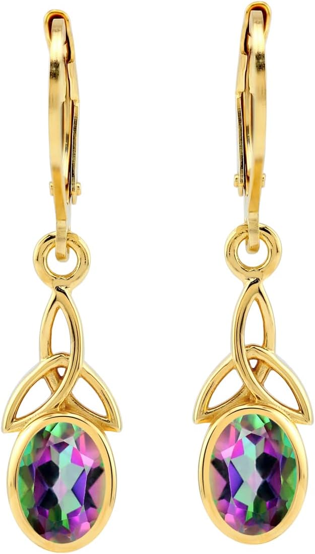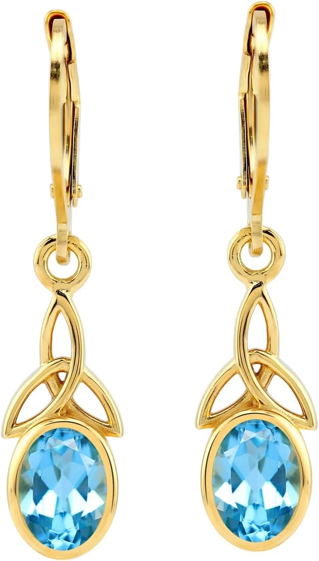Silvershake 7X5mm Oval Shape Birthstone Gemstone White Gold Plated or Yellow Gold Plated 925 Sterling Silver Triquetra Celtic Knot Leverback Dangle Earrings Jewelry for Women