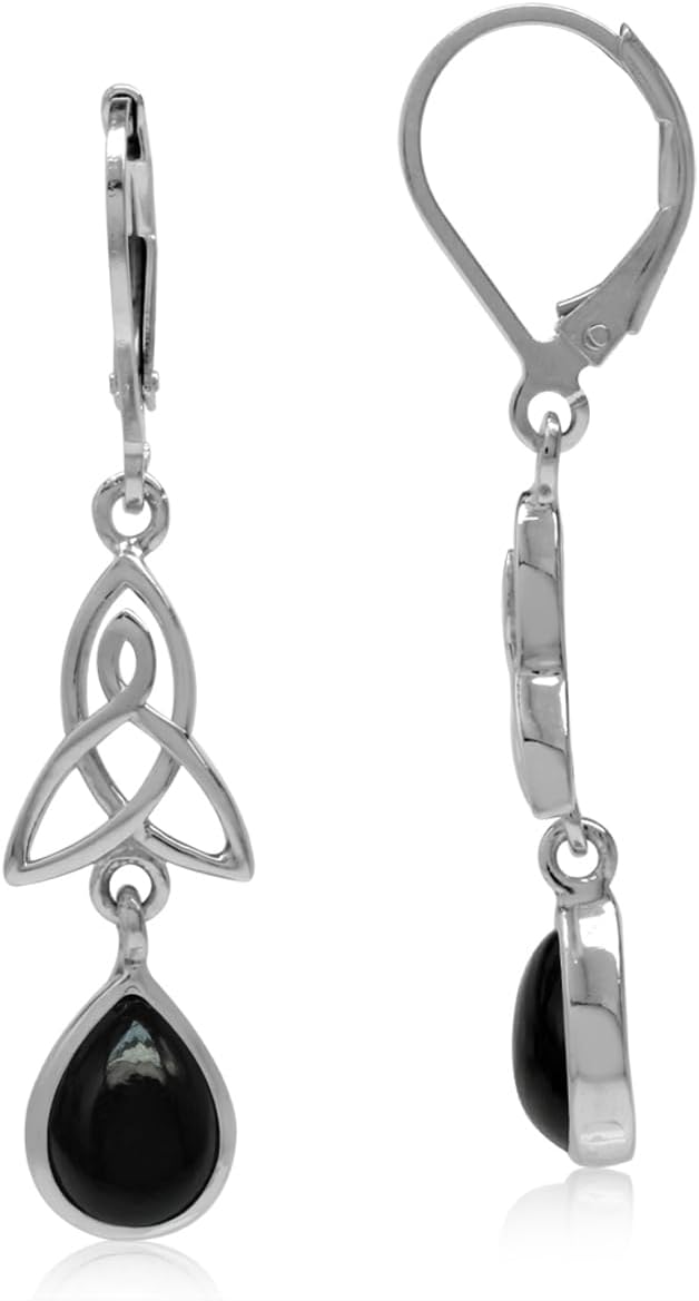 Silvershake 8X6mm Pear Shape Cabochon Stone White Gold Plated or Yellow Gold Plated 925 Sterling Silver Triquetra Celtic Knot Drop Dangle Leverback Earrings Jewelry for Women