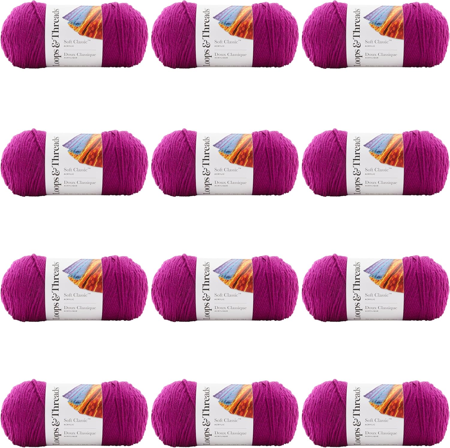• Inspiring colors for every hook, stitch and purl. This delightful yarn is available in a colorful palette perfect for your next blanket, scarf or hat project. This yarn comes in the same colors and is the same quality as Value by Craft Smart, packaging may vary.We understand the importance of dye lots and will try to match dye lots for your order, however, we cannot guarantee all skeins will be the same dye lot.12 Skein PackWeight: Medium (4)Contents: 100% acrylicSkein Weight: 7