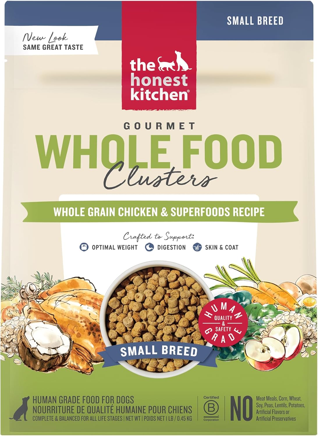 | Additional Features | Human Grade Production, Cold Pressed, Slow Roasted, Dehydrated, Cage Free Chicken, Veggies, Salmon Oil, Probiotics |