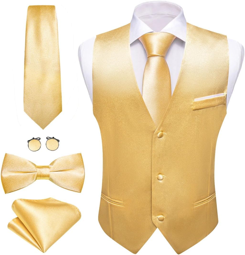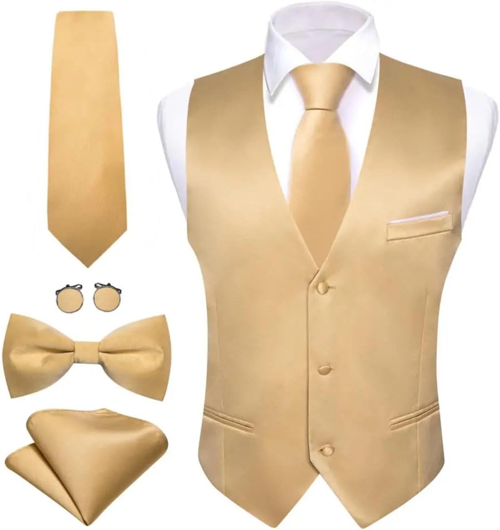 Material:SilkMaterial:SilkApplicable Season:Four SeasonsApplicable Scene:WEDDINGFabric Type:DobbyStyle:FormalOrigin:Mainland ChinaItem Type:VestsGender:MENPattern:SolidMen Vests:Vests+Tie+Hanky+Cufflinks