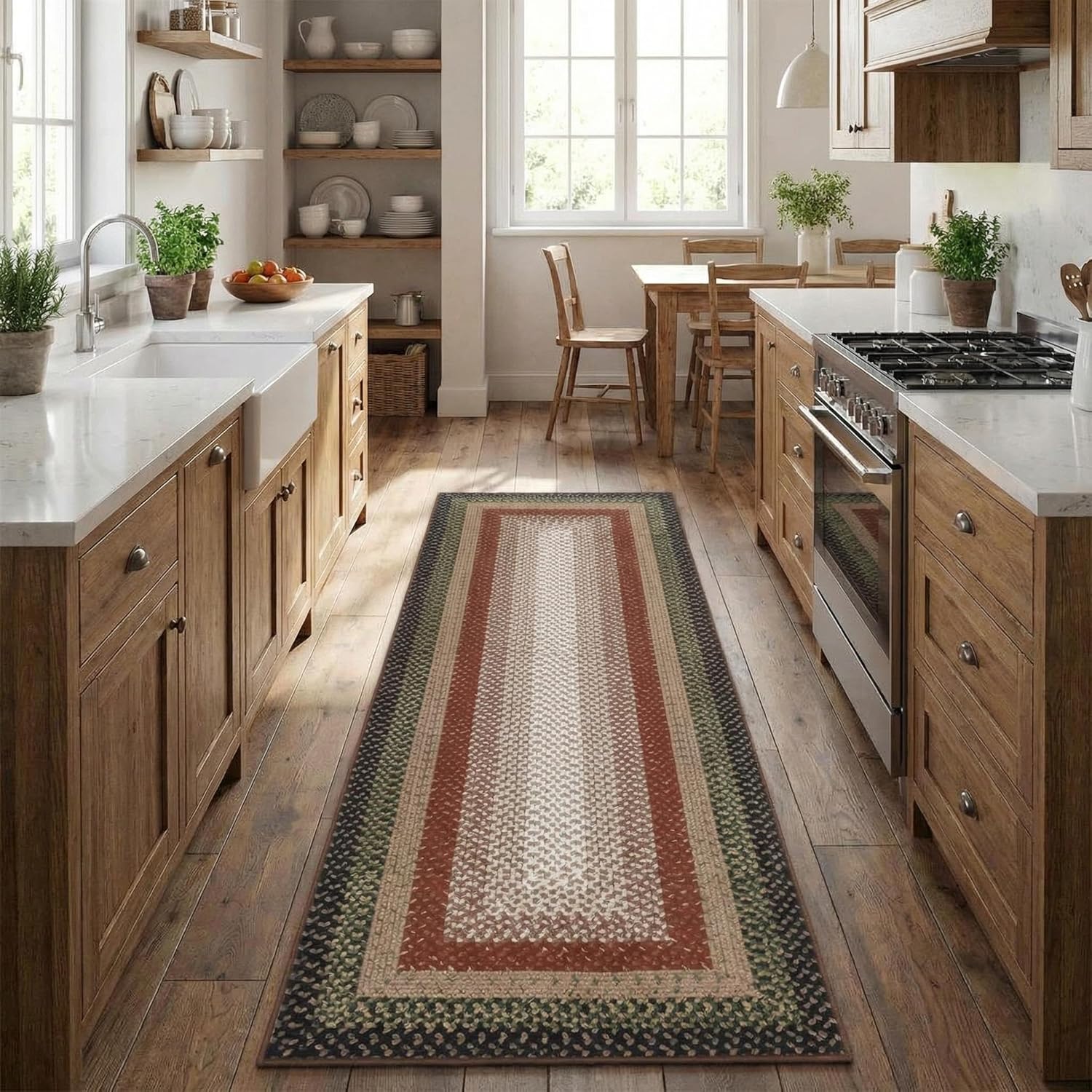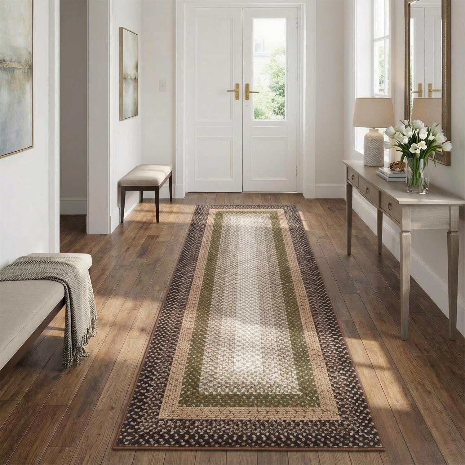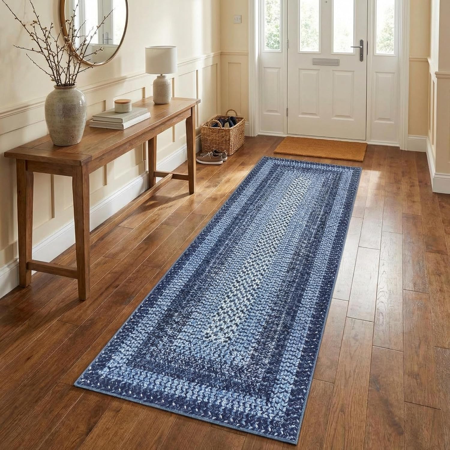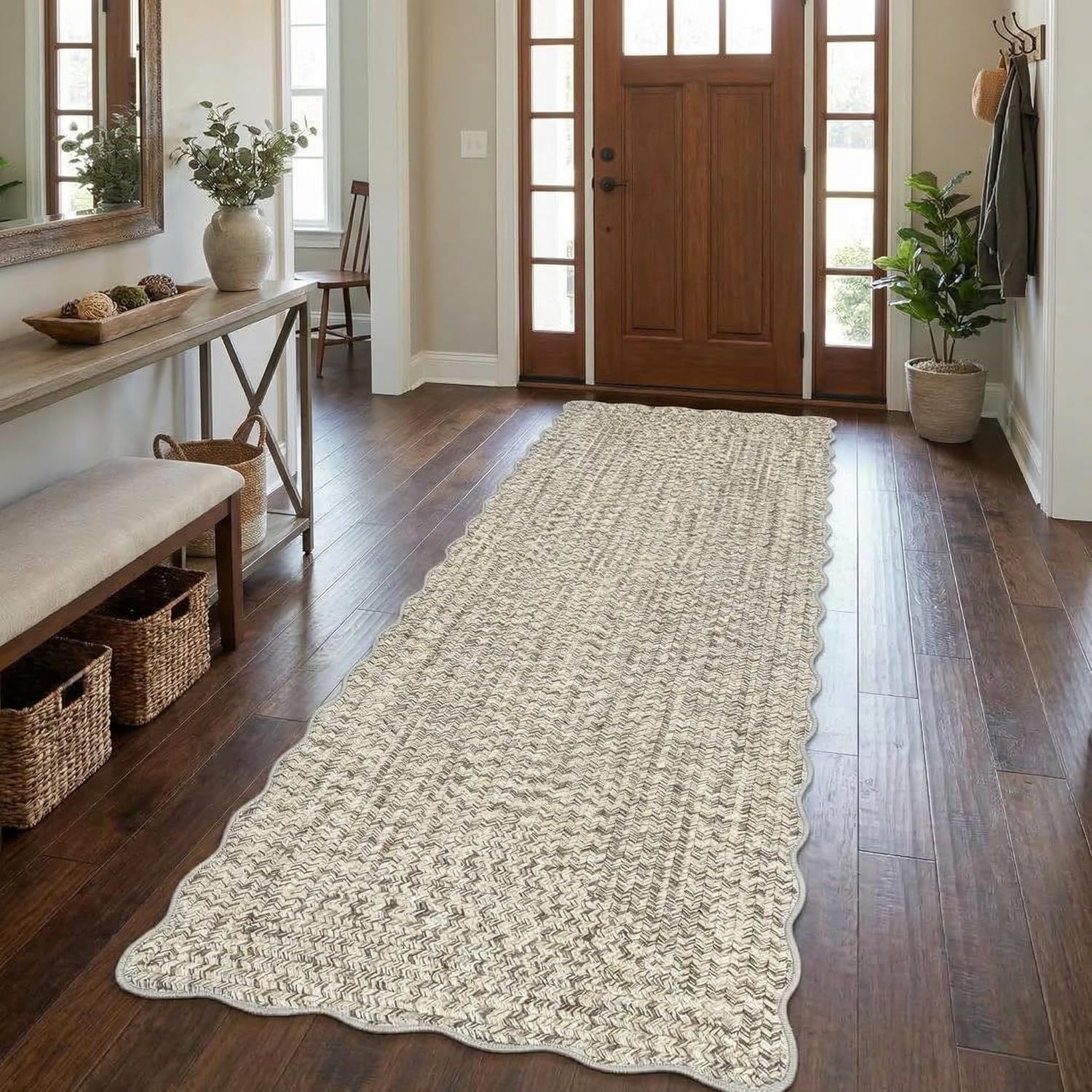 Discover the perfect blend of style and comfort for your home with our braided print area rug 【Braided digital print rug NOT REAL HAND-WOVEN BRAIDED RUG】.Imagine a serene, classic touch enhancing your living space—offering a ultra-soft, non-slip low pile surface that's not only easy to clean but also thoughtfully designed to fit beautifully under furniture, making everyday moments feel just a little more inviting.Highlights at a Glance:- Subtle, neutral tones that effortlessly match any décor- Non-slip backing for secure placement- Durable polyester built to withstand daily use- Low pile design that glides smoothly under doors- Machine or hand washable for simple, stress-free cleaning- Non-shedding fibers help keep your floors neat and tidy- Reinforced edges for long-lasting quality and resistance to fraying- Lightweight and foldable for convenient storage and transportSpecification:Product Name: Braided Print Area RugMaterial: Polyester + Textured TPRApplication: Living Room / Bedroom / Dining Room / Entryway / Nursery / Playroom / Office / Kitchen / Farmhouse / Hallway / Laundry / Dorm / CottageFriendly Note:When you receive your washable area rug, simply unroll and lay it flat. You might notice some creases from packaging—but no need to worry! They'll naturally relax and disappear within a few days.Measure your space and select the perfect size that fits your area beautifully. We recommend choosing a carpet that not only covers your desired space but also complements the surrounding furniture, creating a warm and harmonious look.Please also note that due to differences in lighting and screen settings, the actual color may vary slightly from what you see. We appreciate your understanding and continued support!Care Instructions:- Hand wash or machine wash in cold water- For small spills, spot cleaning is recommended- Safe for vacuum cleaners and robot vacuums- Use mild detergent to preserve fabric quality
