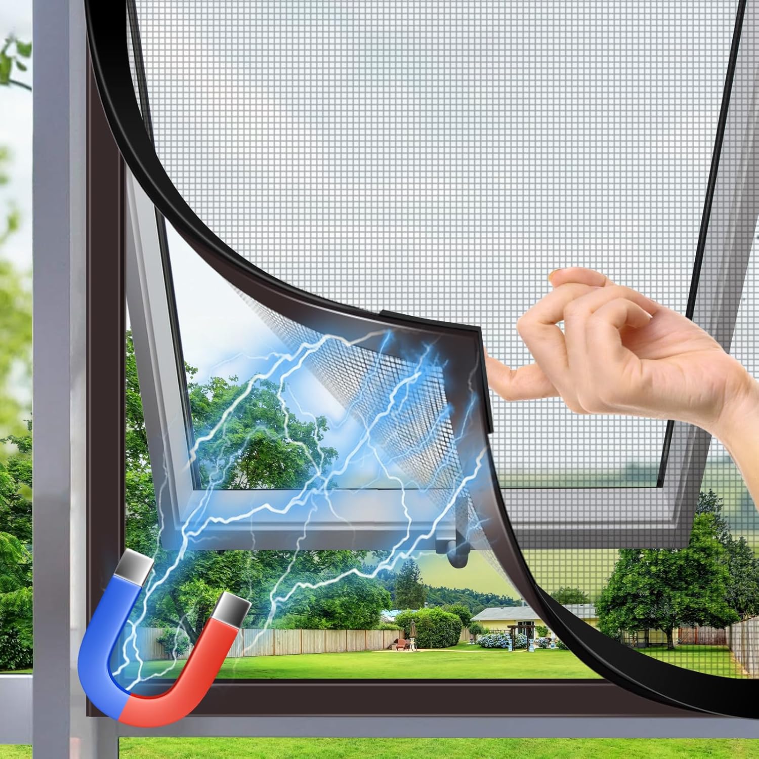 • STRONG & POWERFUL: Magnetic window screen with powerful magnets! Super powerful magnets on the mesh screen make sure that it stays closed & also allows easy open for window access when needed. It is equipped with strong adhesive magnetic strips (magnetic force up to 720GS), doubling the magnetic attraction for a secure fit