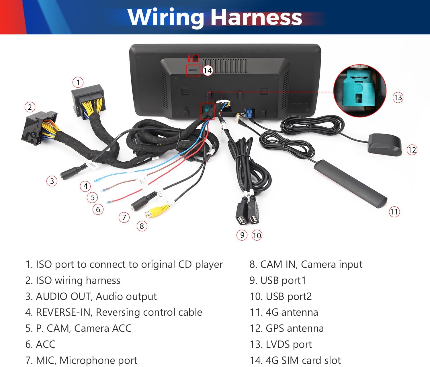 | BuiltIn Media | 1 x ISO Wiring Hamness / 1 x Audio Cable / 1 x GPS Antenna / 1 x USB Cable / 1 x 4G Antenna / 1 x Tweezers / 1 x Fix Mount / 3 x Screws / 1 x User Manual / 1 x Installation Instruction |